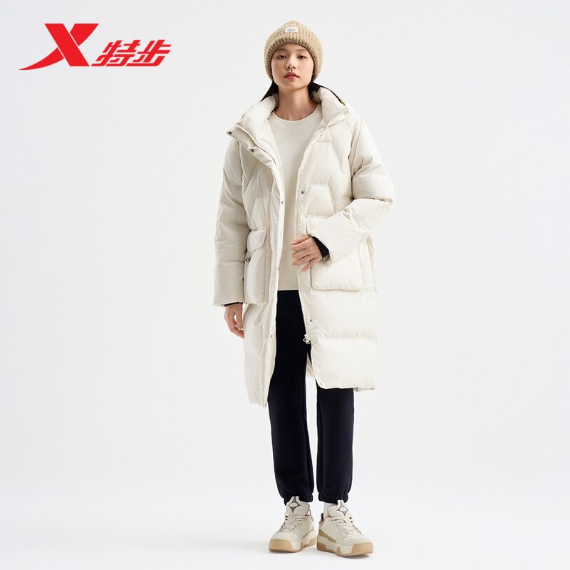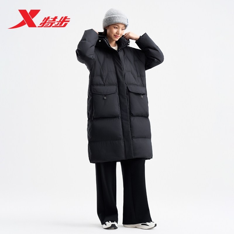 特步中长款羽绒服女款2026冬季新款加绒加厚保暖外套976428640191