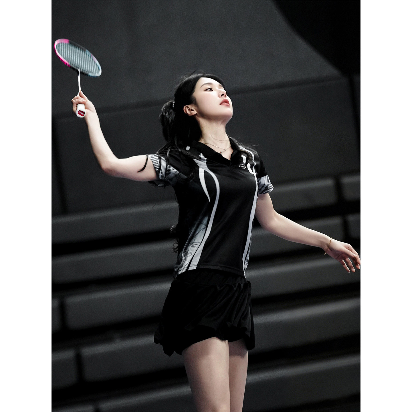 临典黑色羽毛球服短袖T恤女2026新款运动速干透气宽松训练大赛服