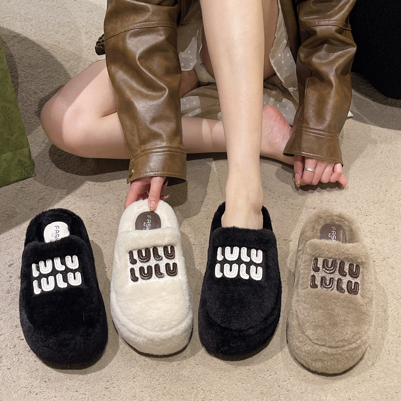 增高小个子8cm厚底毛毛拖鞋女2026冬新款外穿加绒高跟包头棉半拖