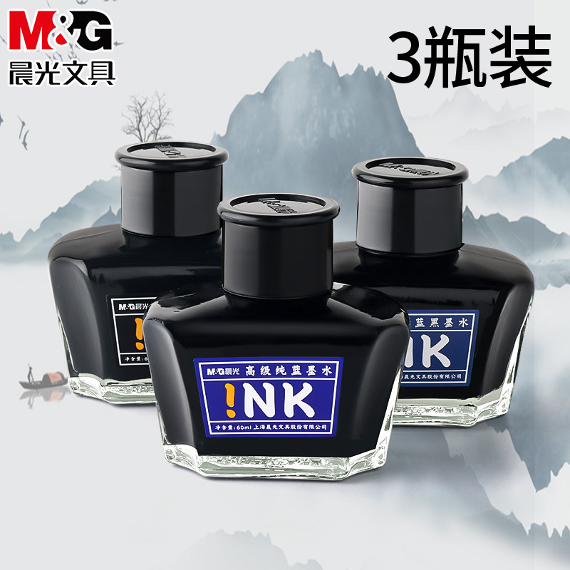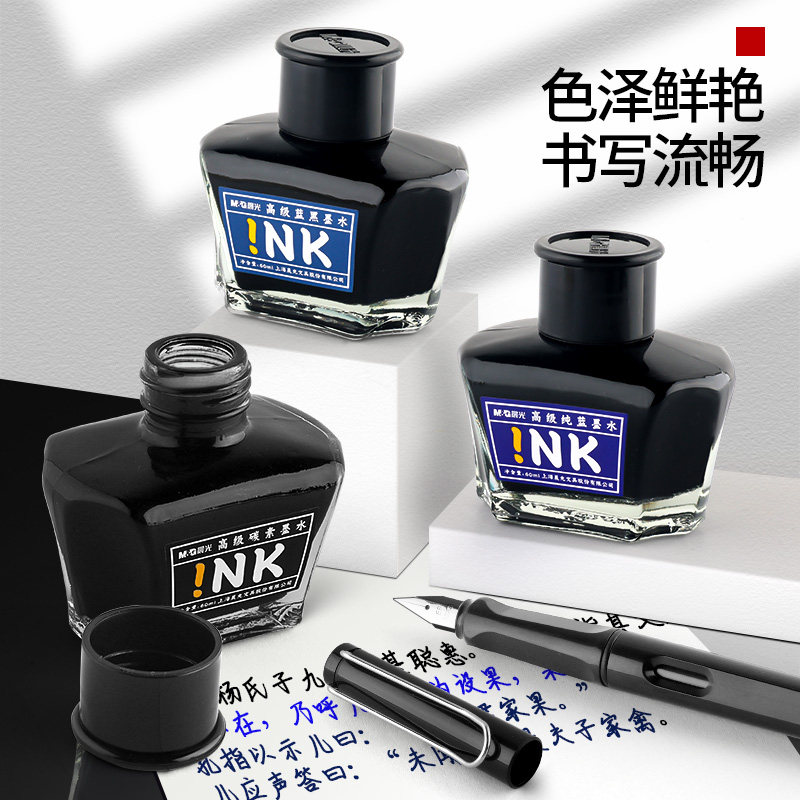 晨光墨水钢笔用黑色墨蓝纯蓝墨水非碳素添加教师专用书写红墨水顺滑流畅60ml钢笔墨水不堵笔学生用钢笔套装