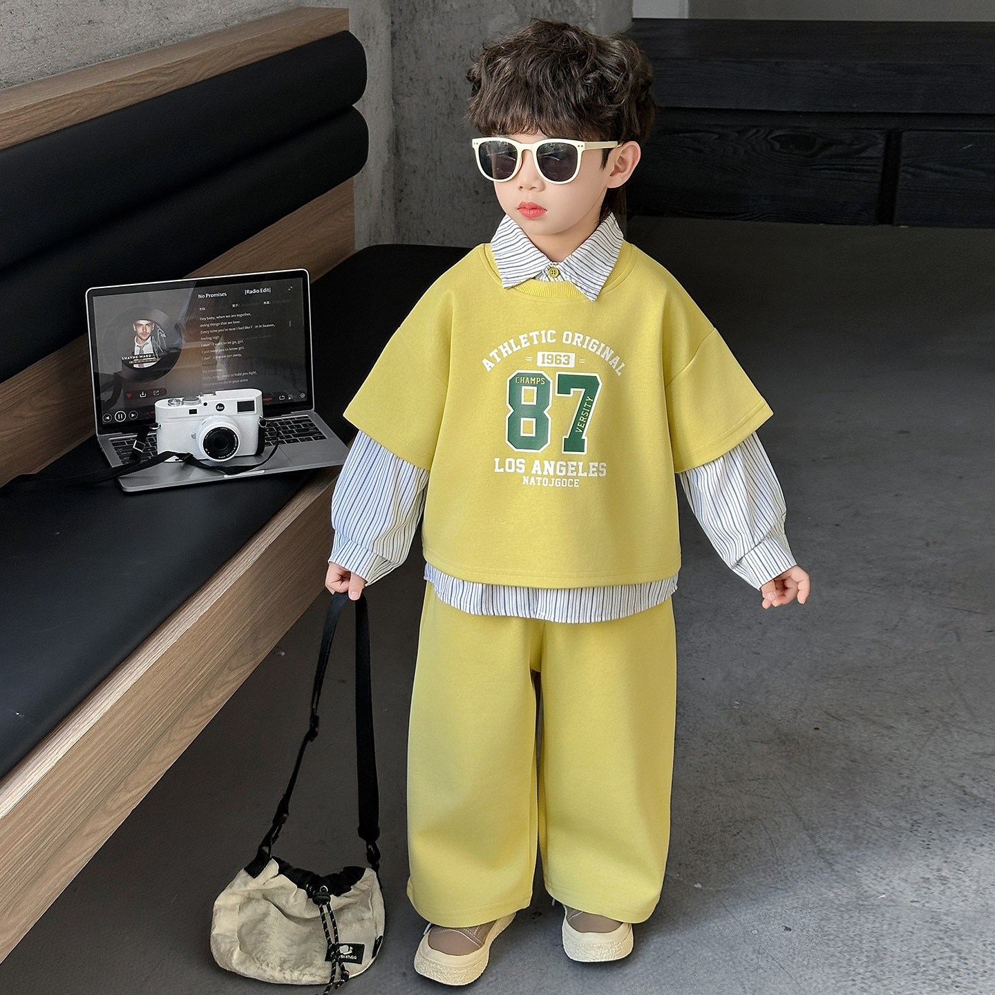 男童春装运动套装2026新款酷帅宝宝三件套儿童春秋休闲学院风衣服