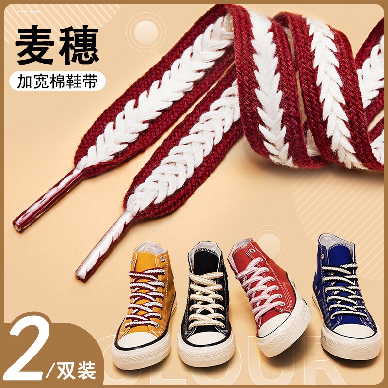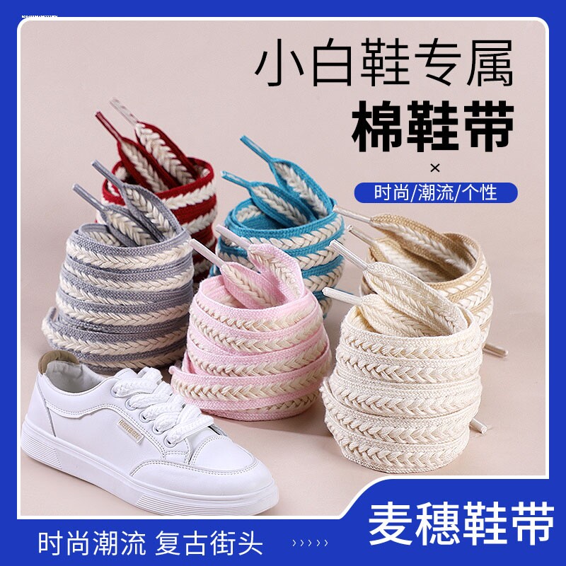 麦穗小白鞋鞋带女男彩黑卡其纯米白色扁平面包板鞋跑鞋编织携带绳