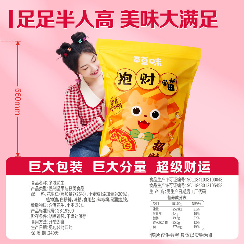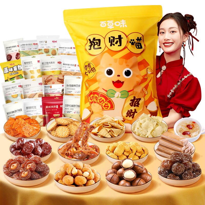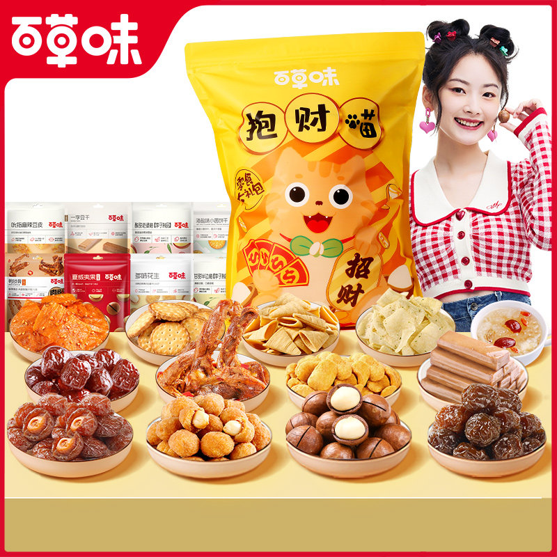 百草味抱财喵1040g零食大礼包儿童节春游小吃送女友生日礼物整箱