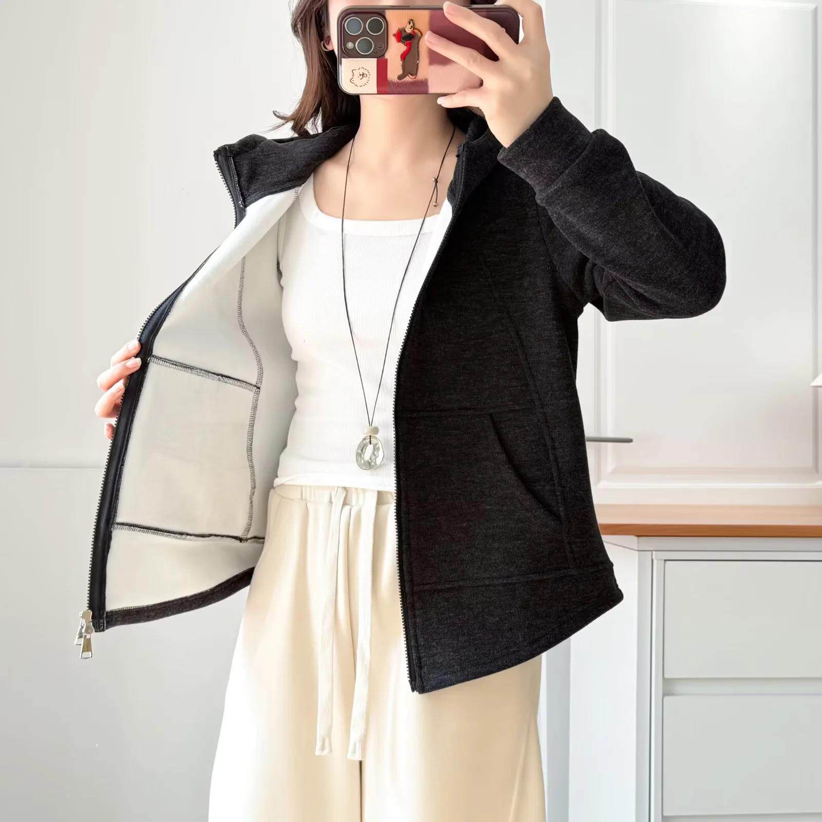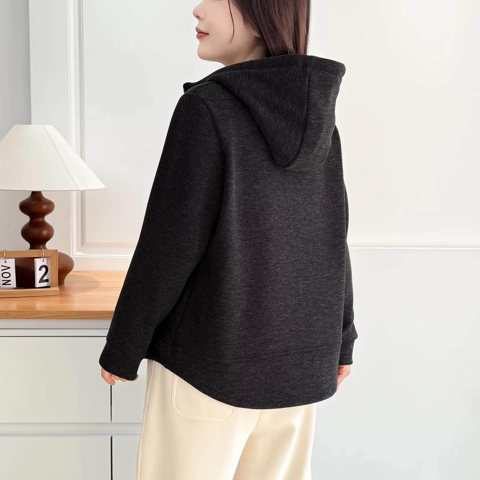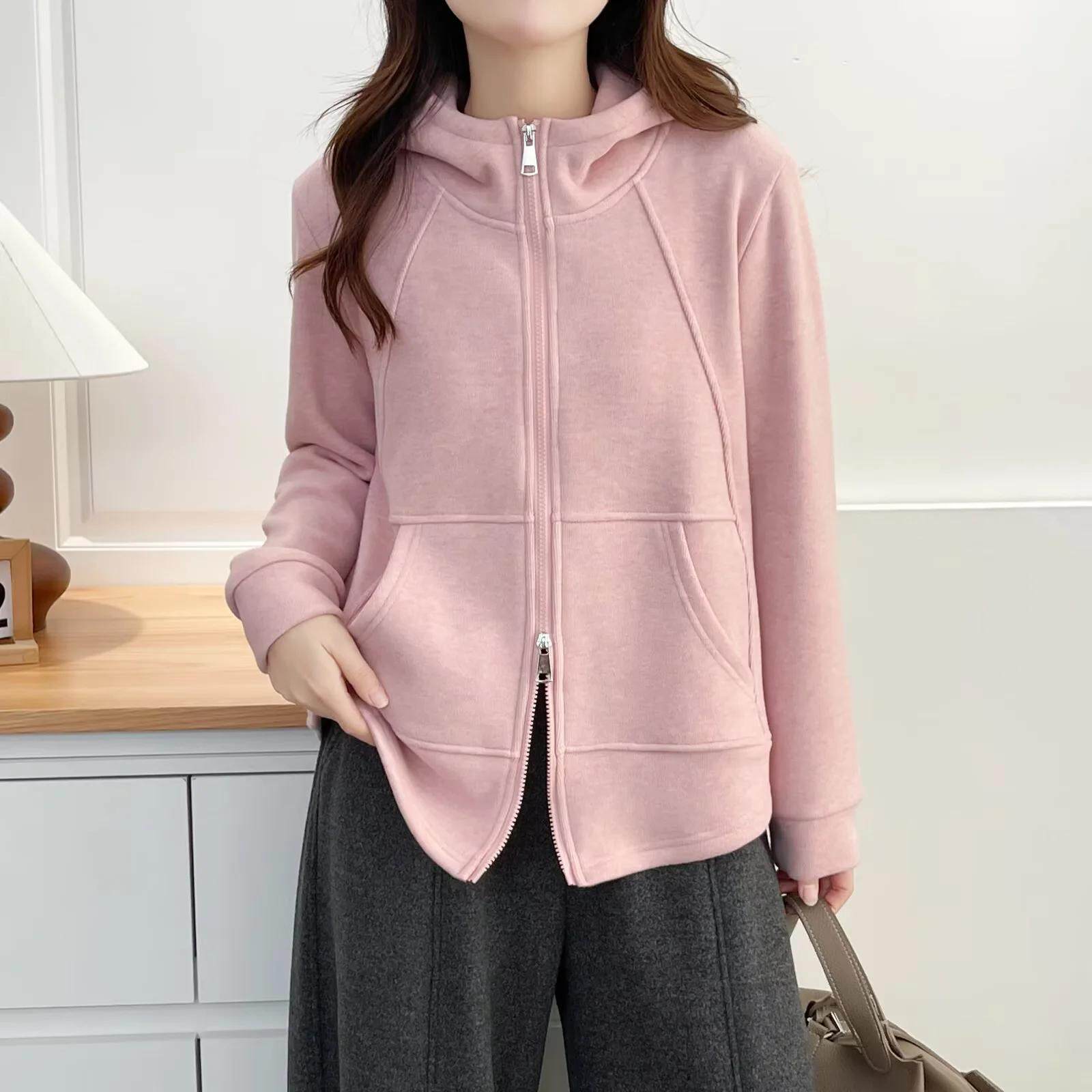 2026冬装胖mm女装中年双拉链连帽外套大码加绒加厚上衣纯色卫衣女
