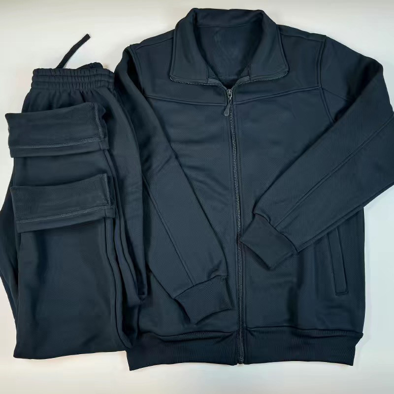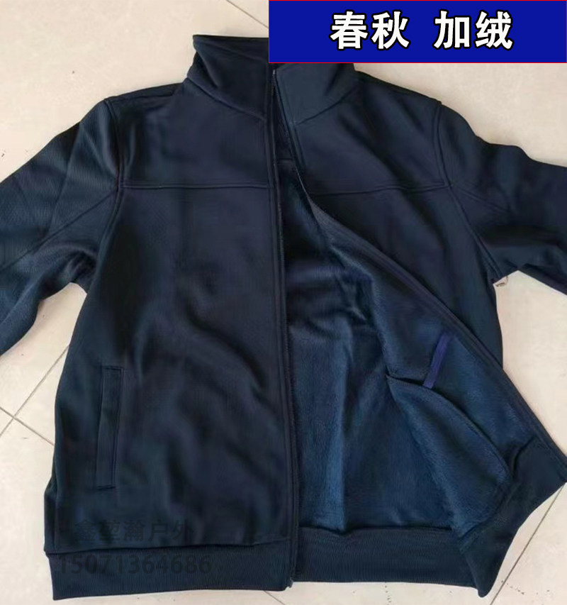 新式冬季加绒训练套装男蓝色加厚防寒保暖长袖外套户外体能运动服