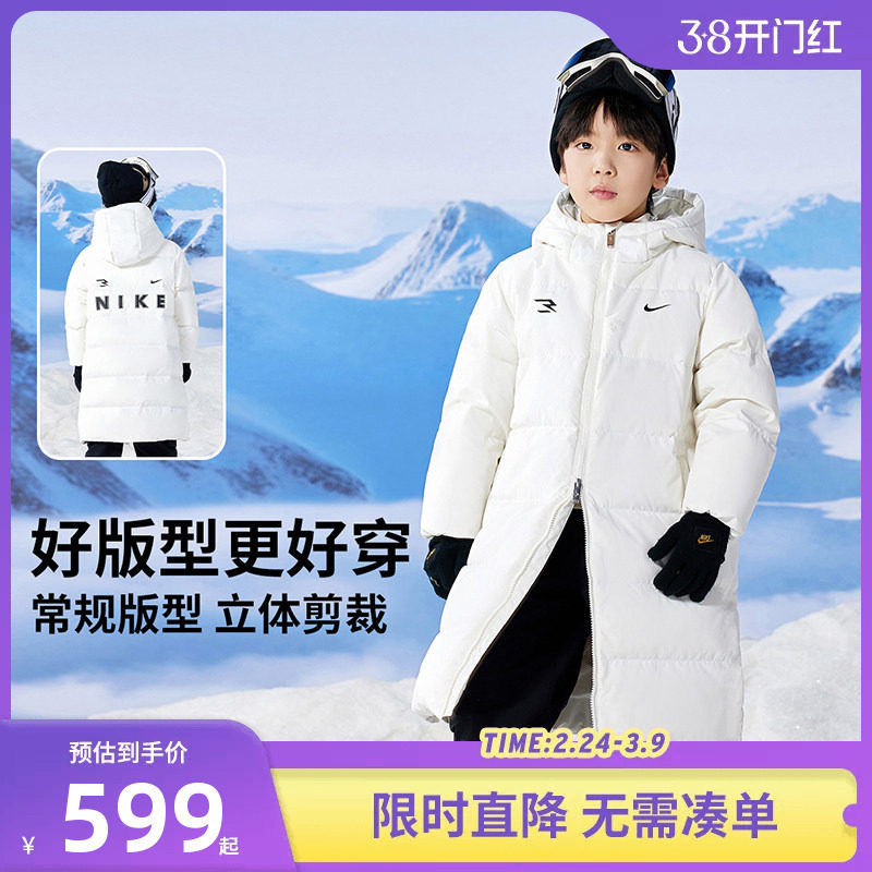 Nike 3brand儿童羽绒服男女童2026新款加厚中长款冬装保暖外套潮