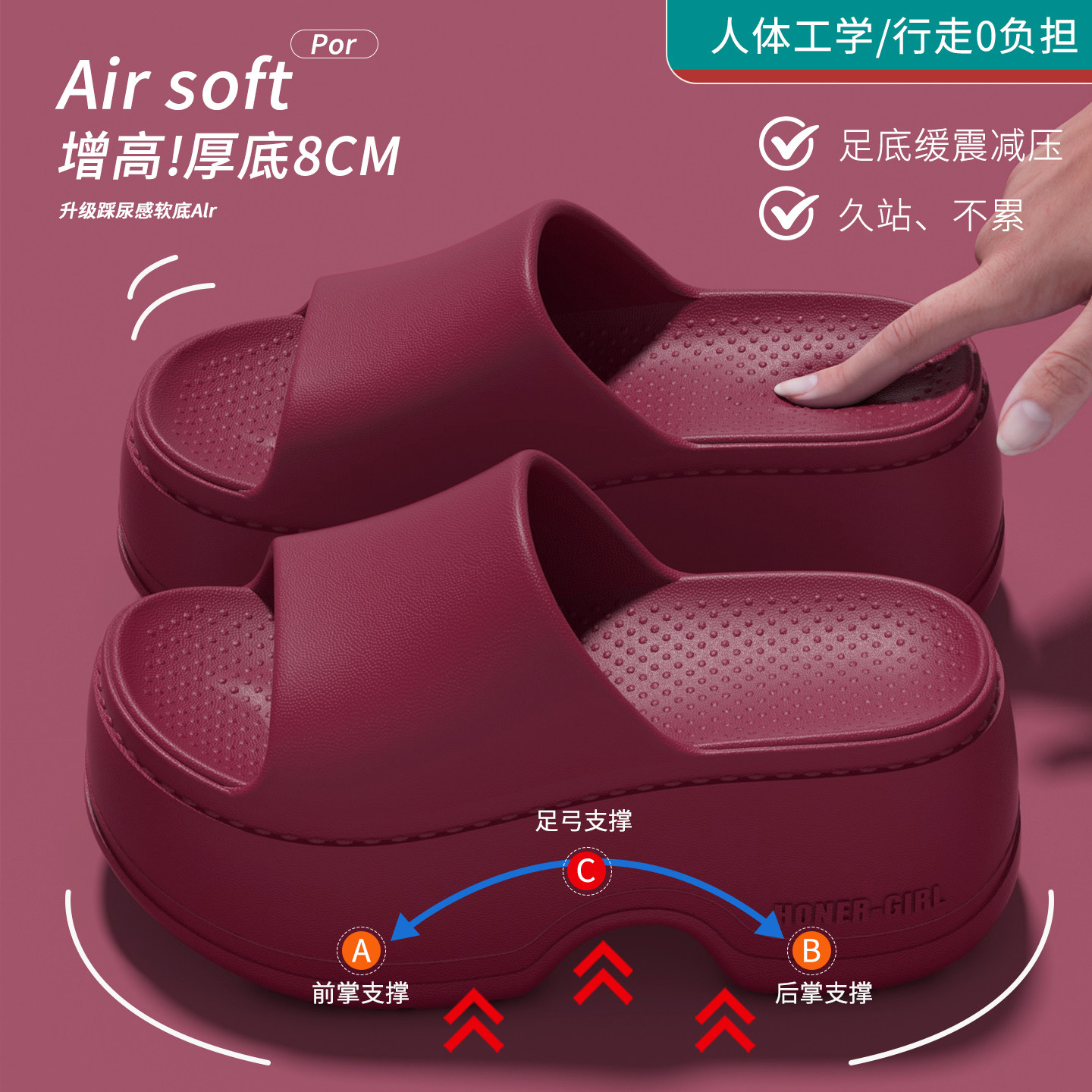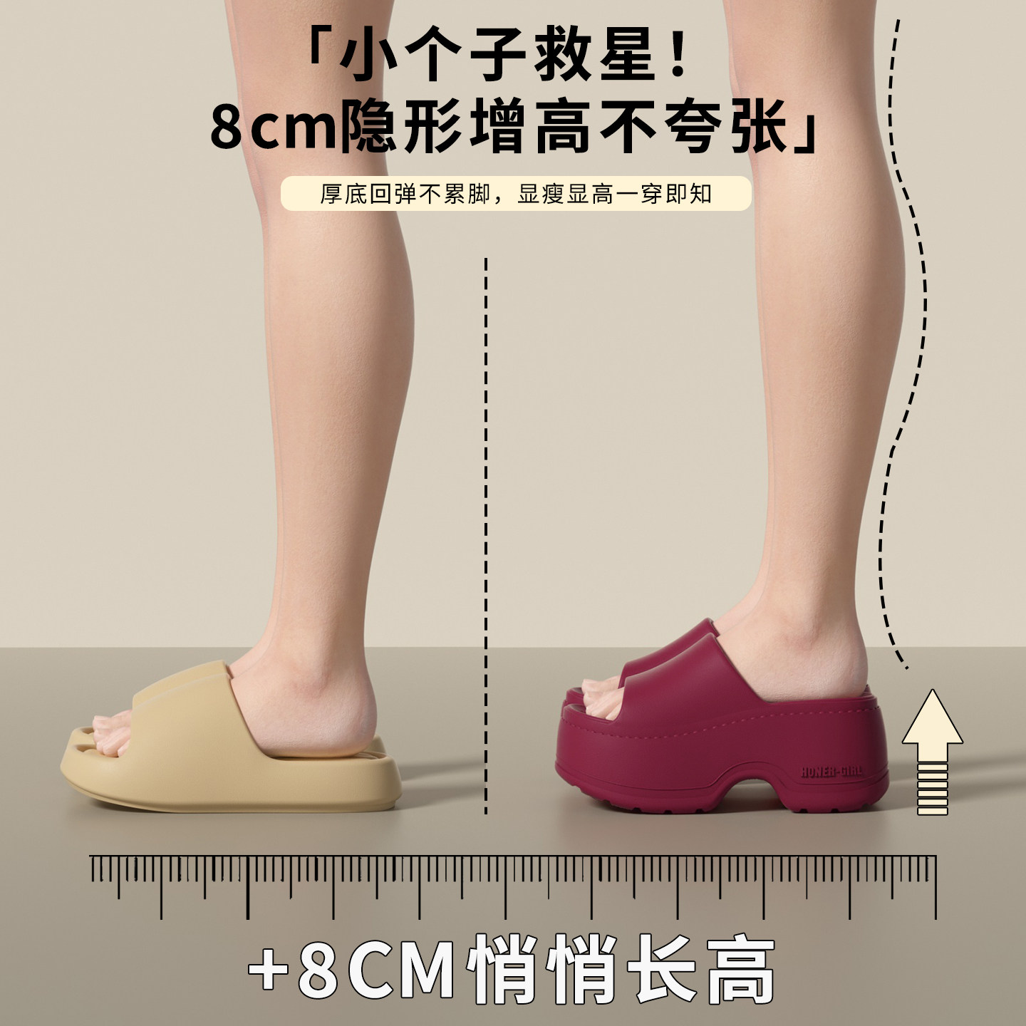 8.0cm厚底增高拖鞋女款夏季外穿2026新款小个子网红超火沙滩凉拖