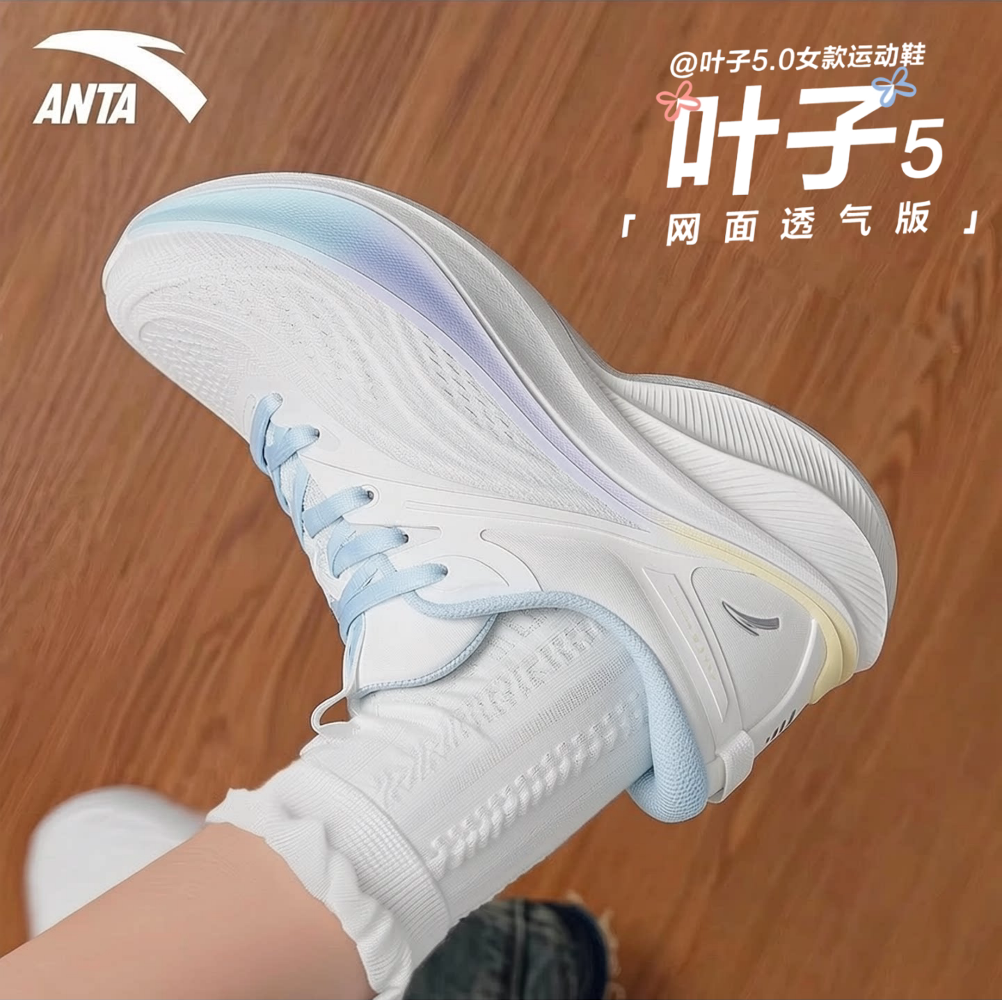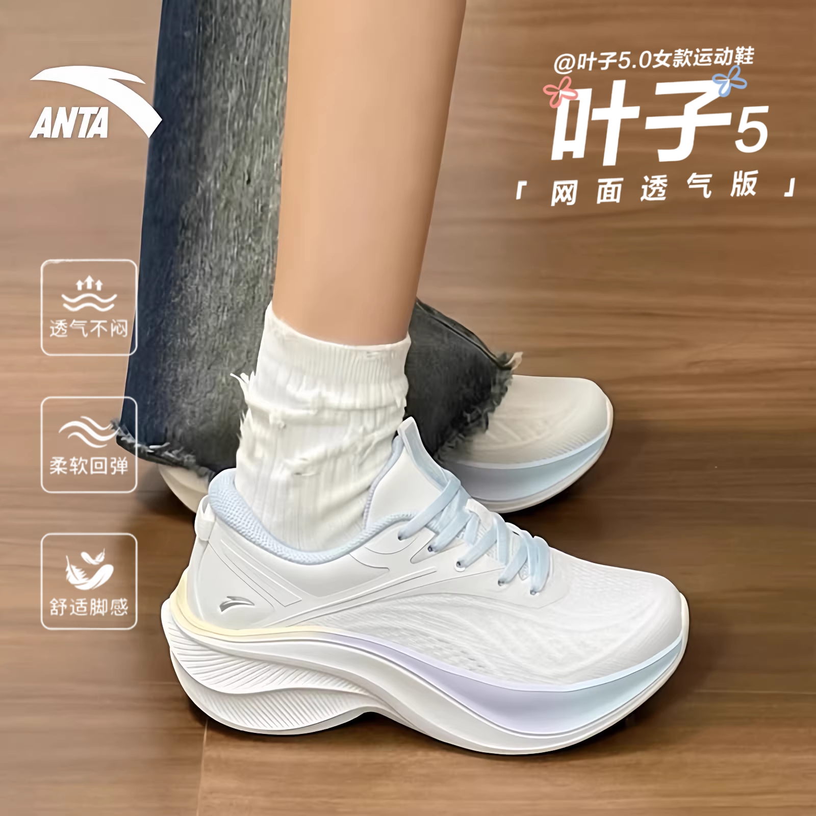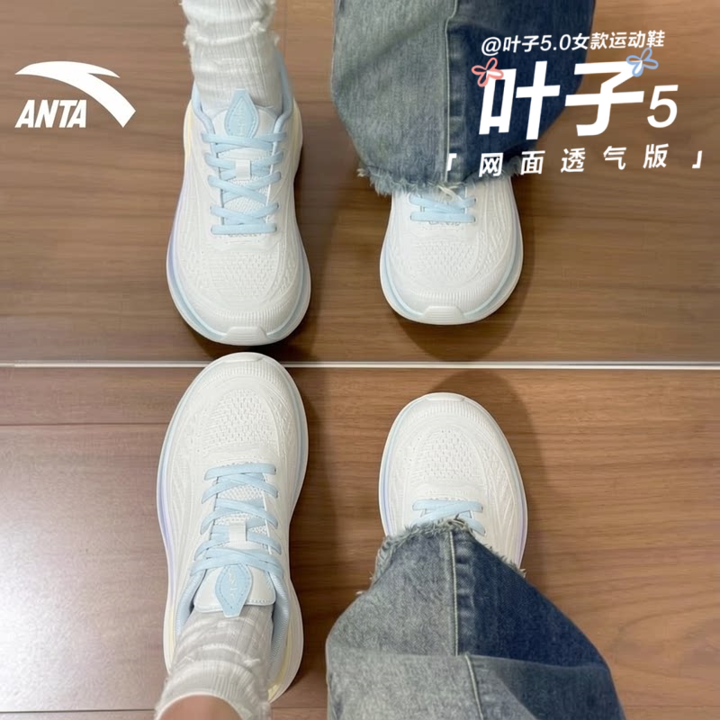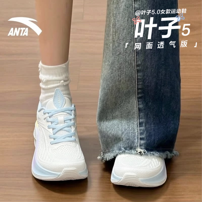 安踏叶子5白色运动鞋女初中学生夏季缓震羽毛球中考体测跑步鞋女