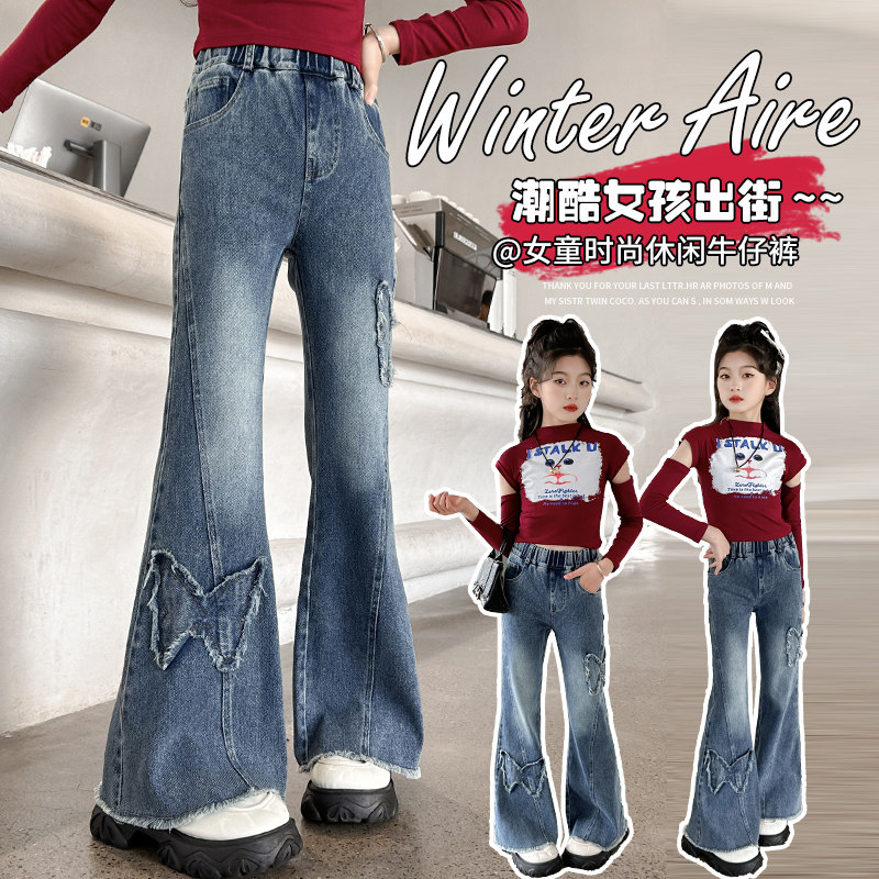女童牛仔裤春装裤子2026新款小女孩喇叭裤春秋季微喇儿童休闲长裤