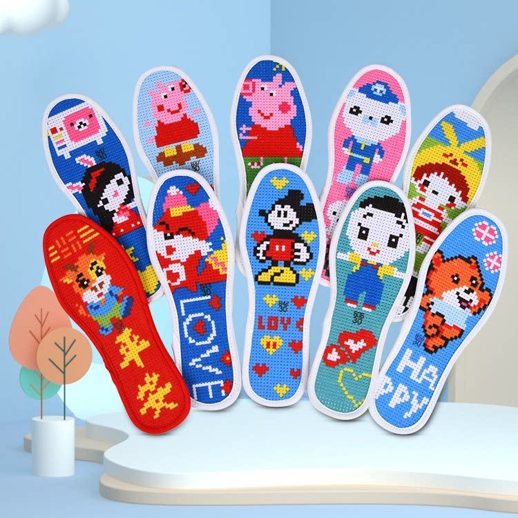 纯棉儿童十字绣鞋垫2026年新款自己绣半成品手工刺绣全棉七层棉布