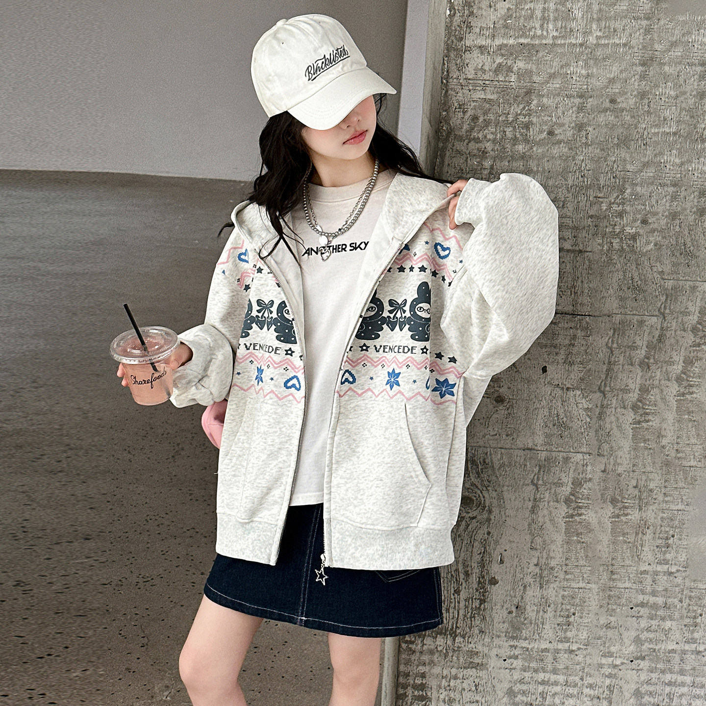 女童卫衣春装2026新款韩版儿童洋气宽松上衣大童休闲开衫连帽外套