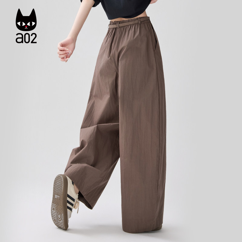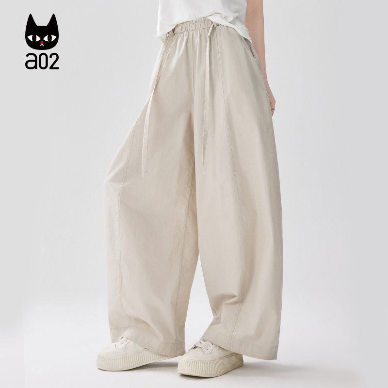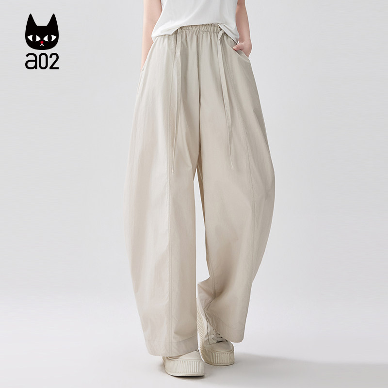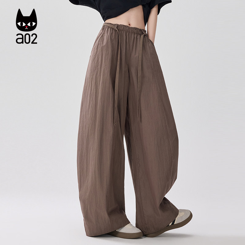 a02宽松微皱休闲裤子女款2026新款春夏慵懒松弛感阔腿长裤薄款