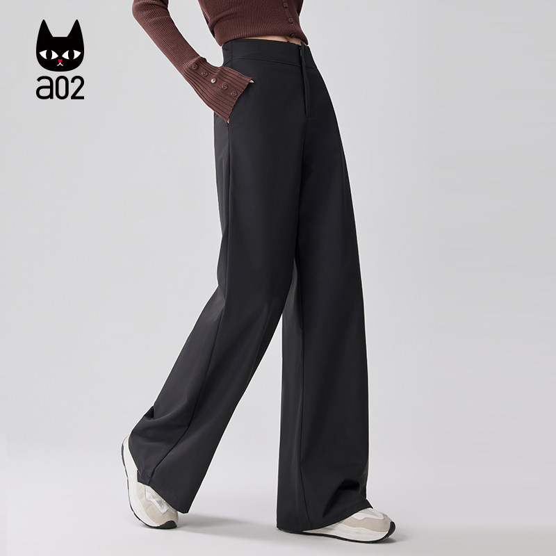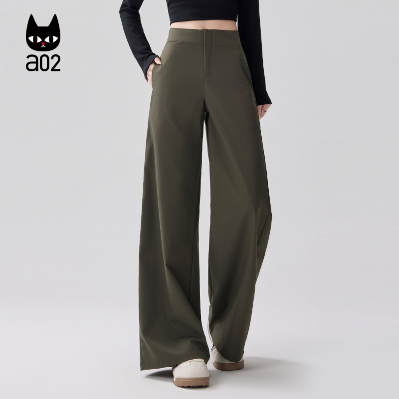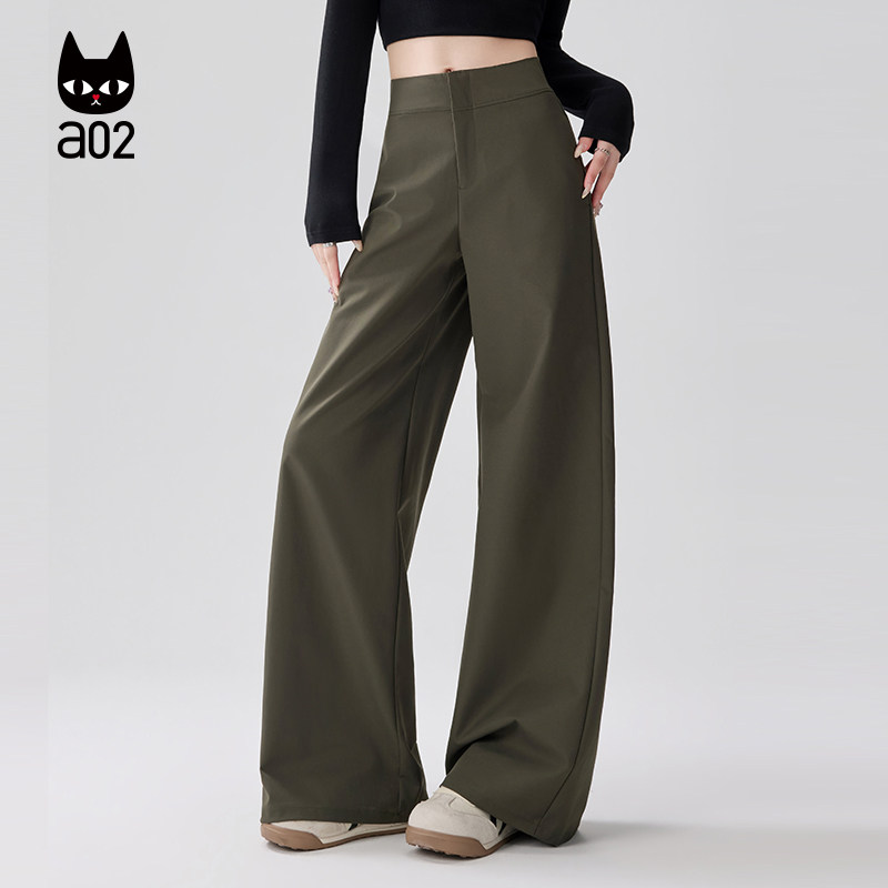 a02宽松垂坠感直筒裤子女款2026新款春夏薄款抗皱阔腿长裤休闲