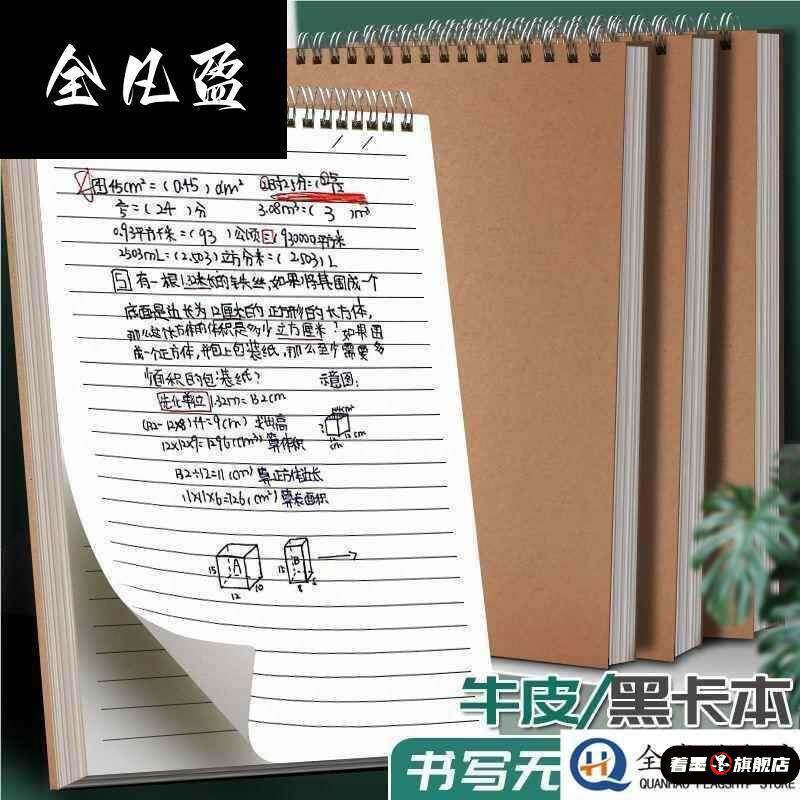 活页本牛皮纸上翻线圈本空白方格本子A5网格黑卡笔记本学生考研本