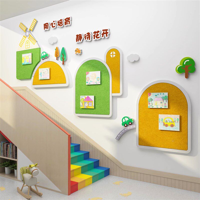 端定制幼儿园大厅布置文化背景墙面装饰毛毡板作品展示墙
