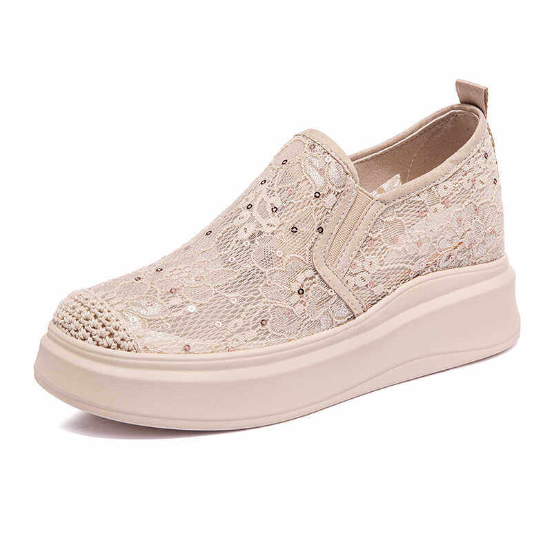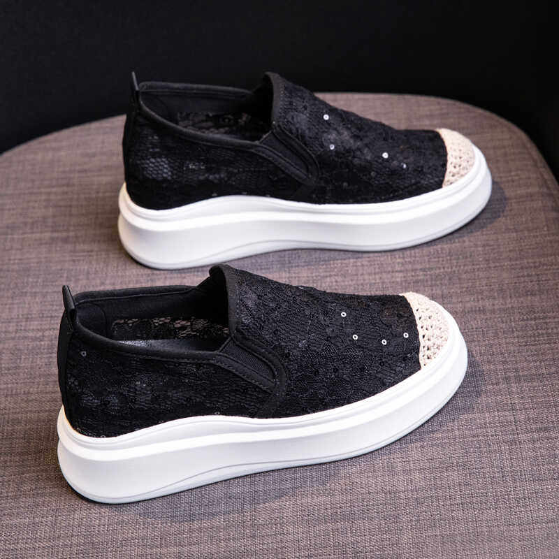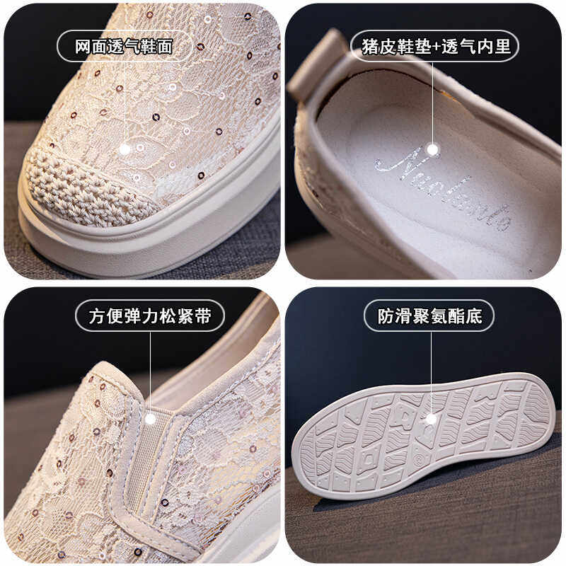 蕾丝内增高女鞋2026新款夏季薄款网面厚底渔夫鞋轻便软底松糕单鞋