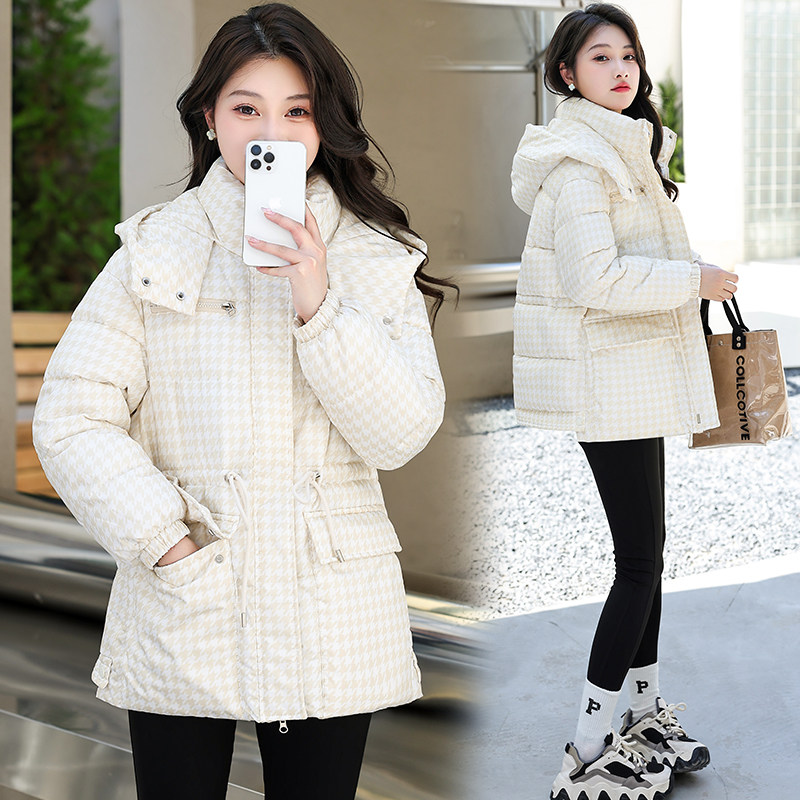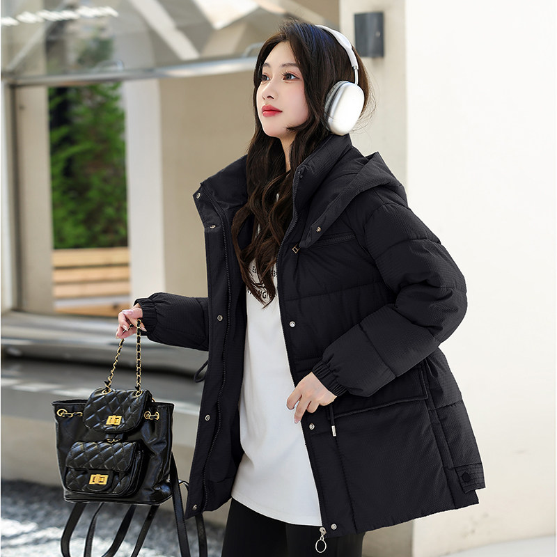 高端棉衣女中长款2025冬季新款宽松加厚抽绳收腰休闲连帽保暖外套