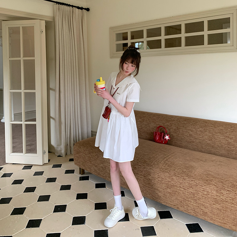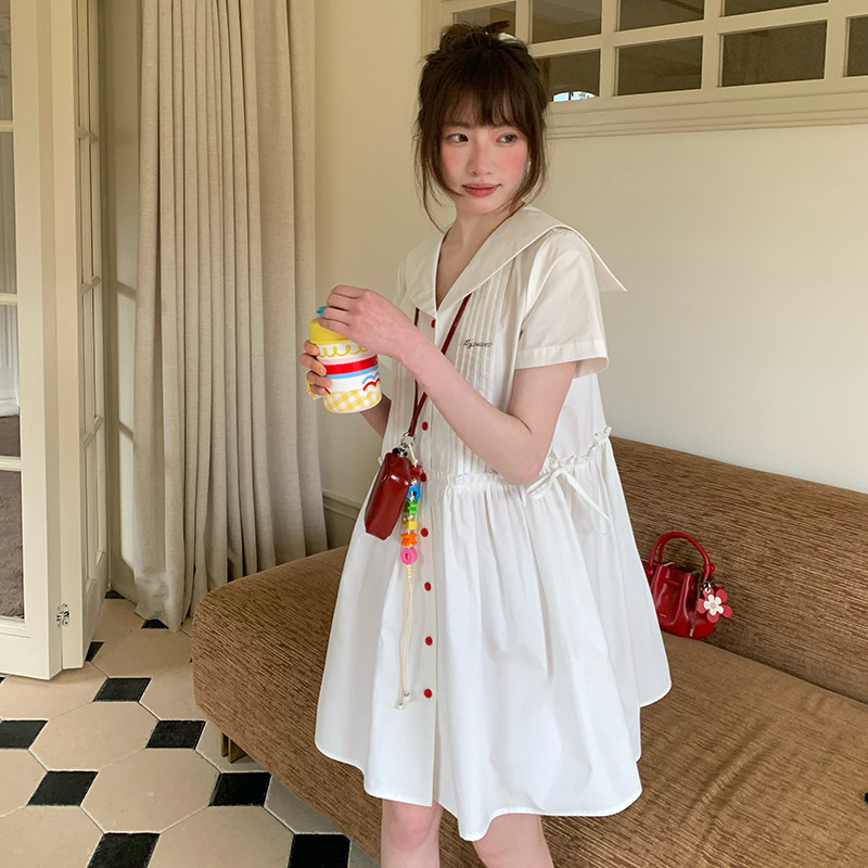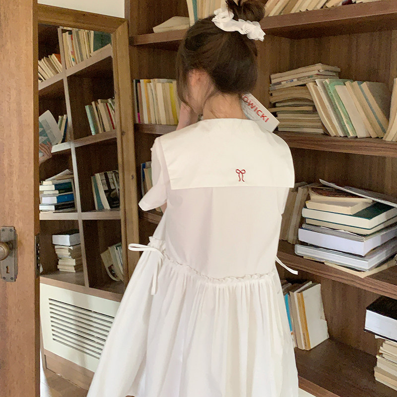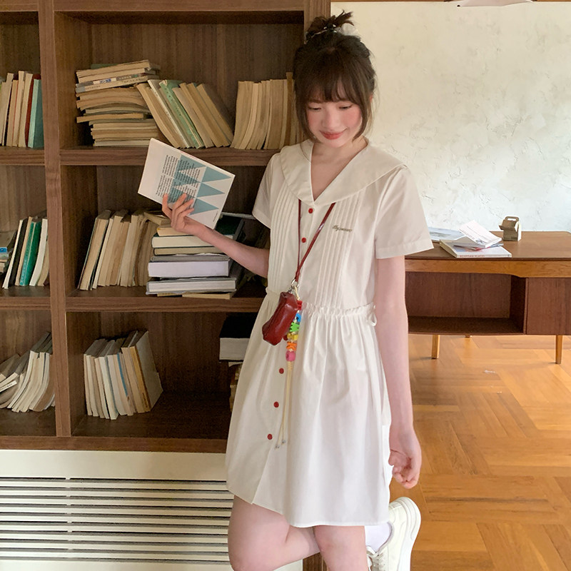 东京岁时记JK学院风收腰海军风小个子白色短袖连衣裙女夏甜美可爱