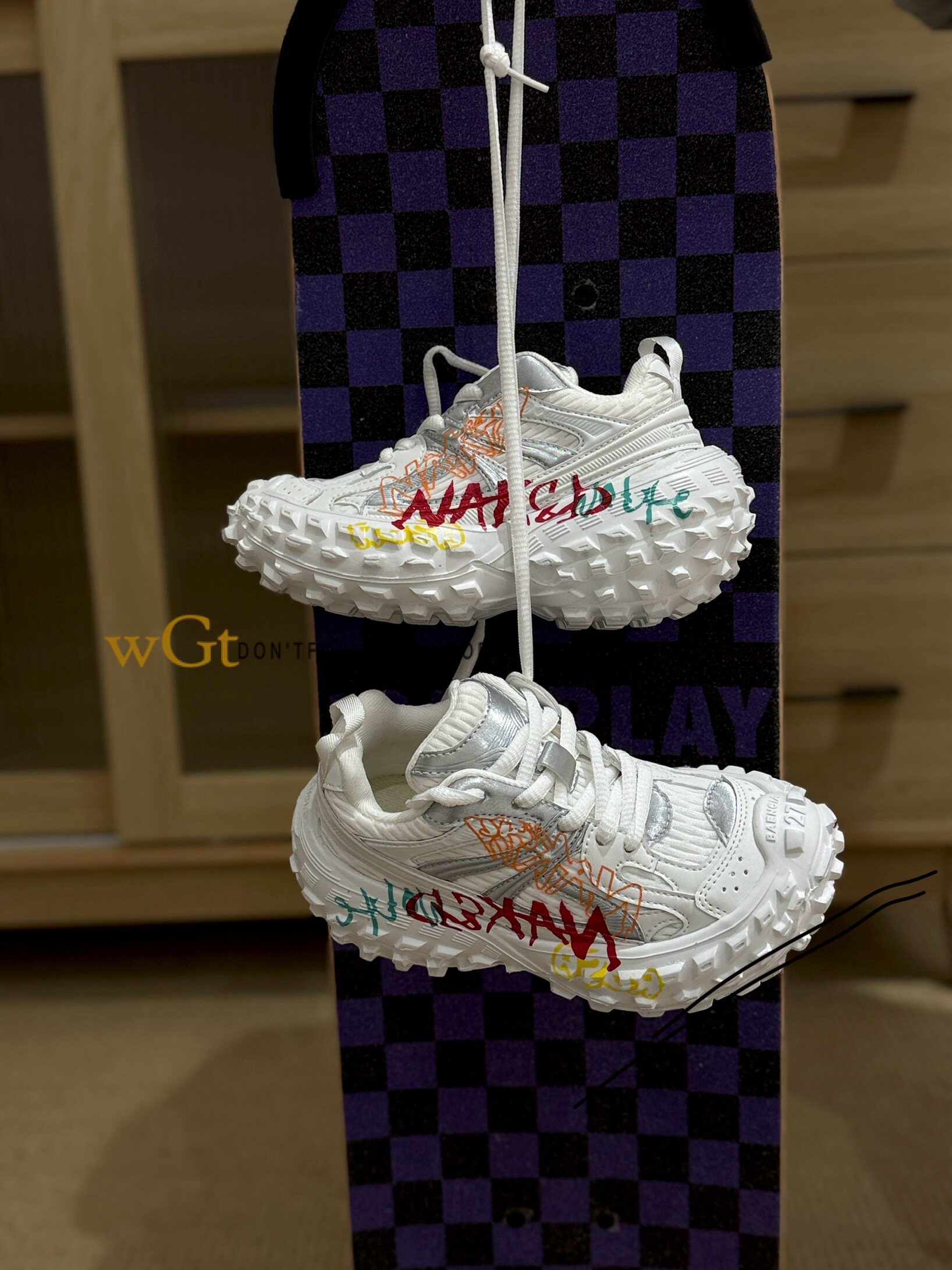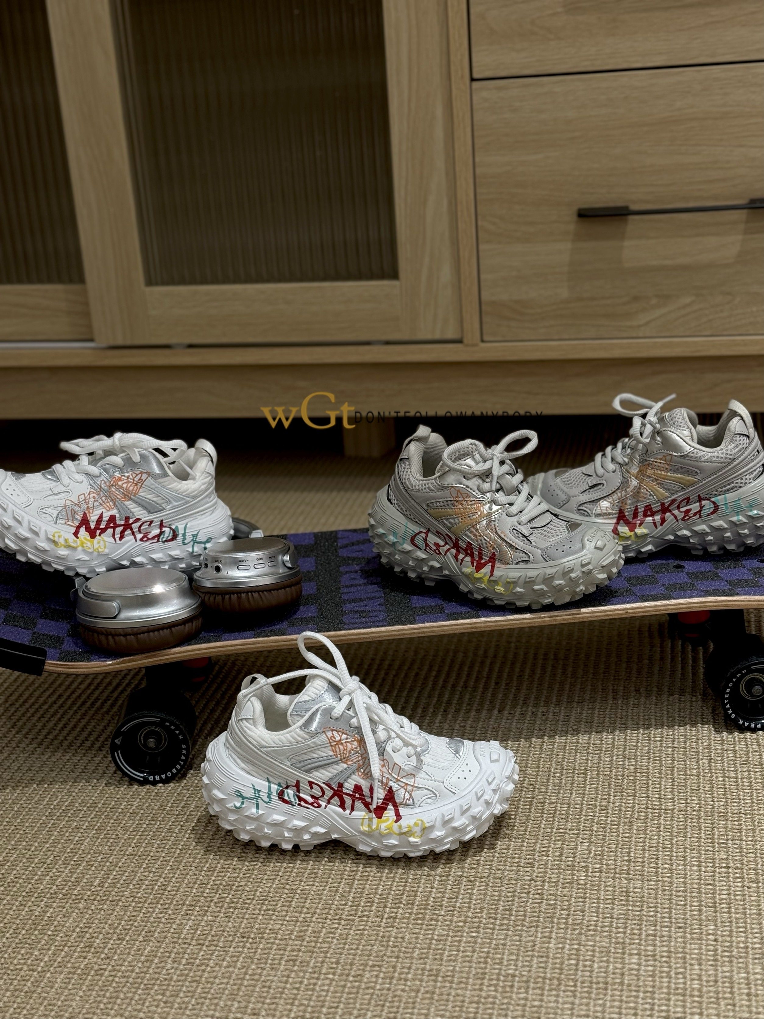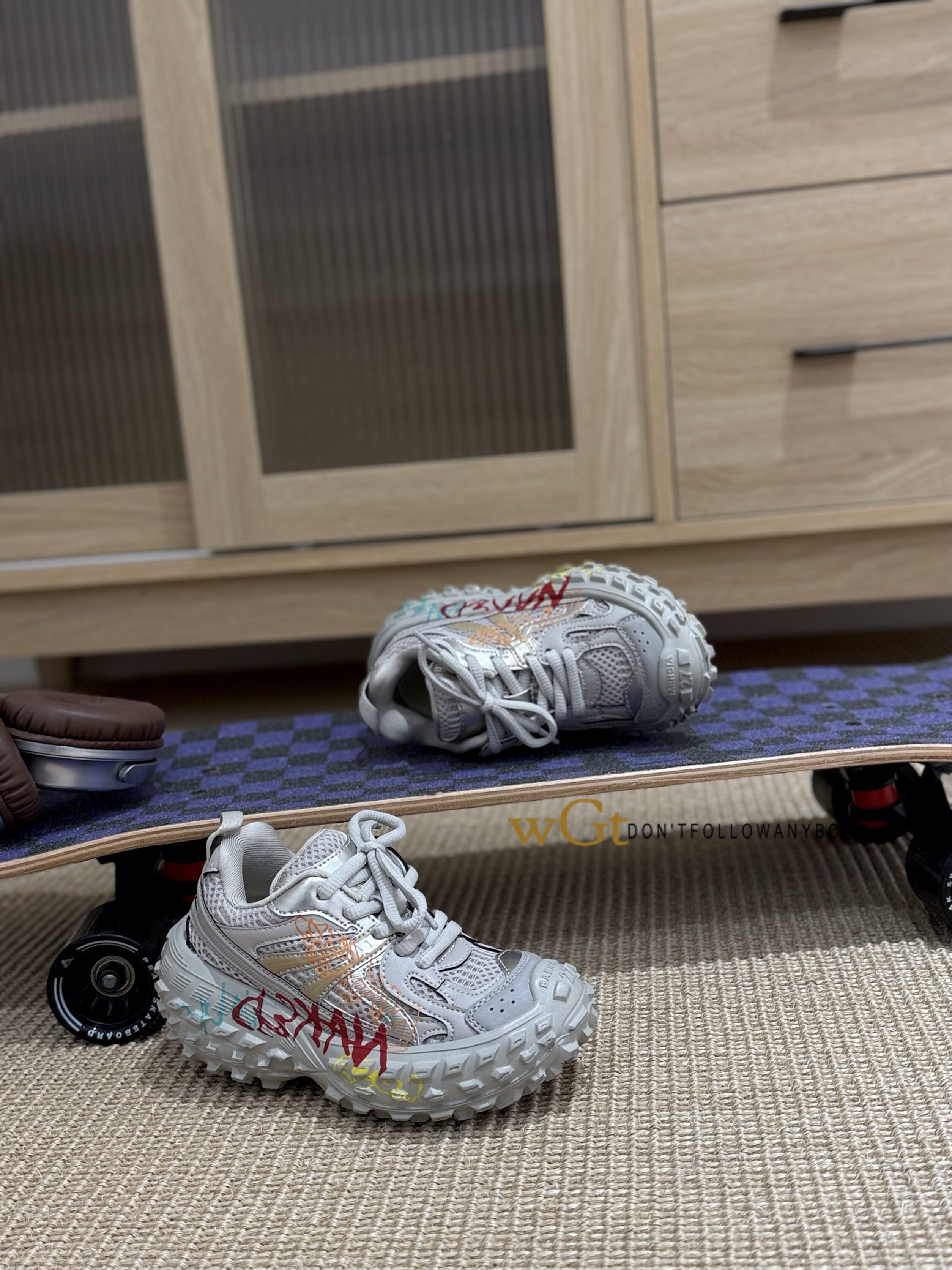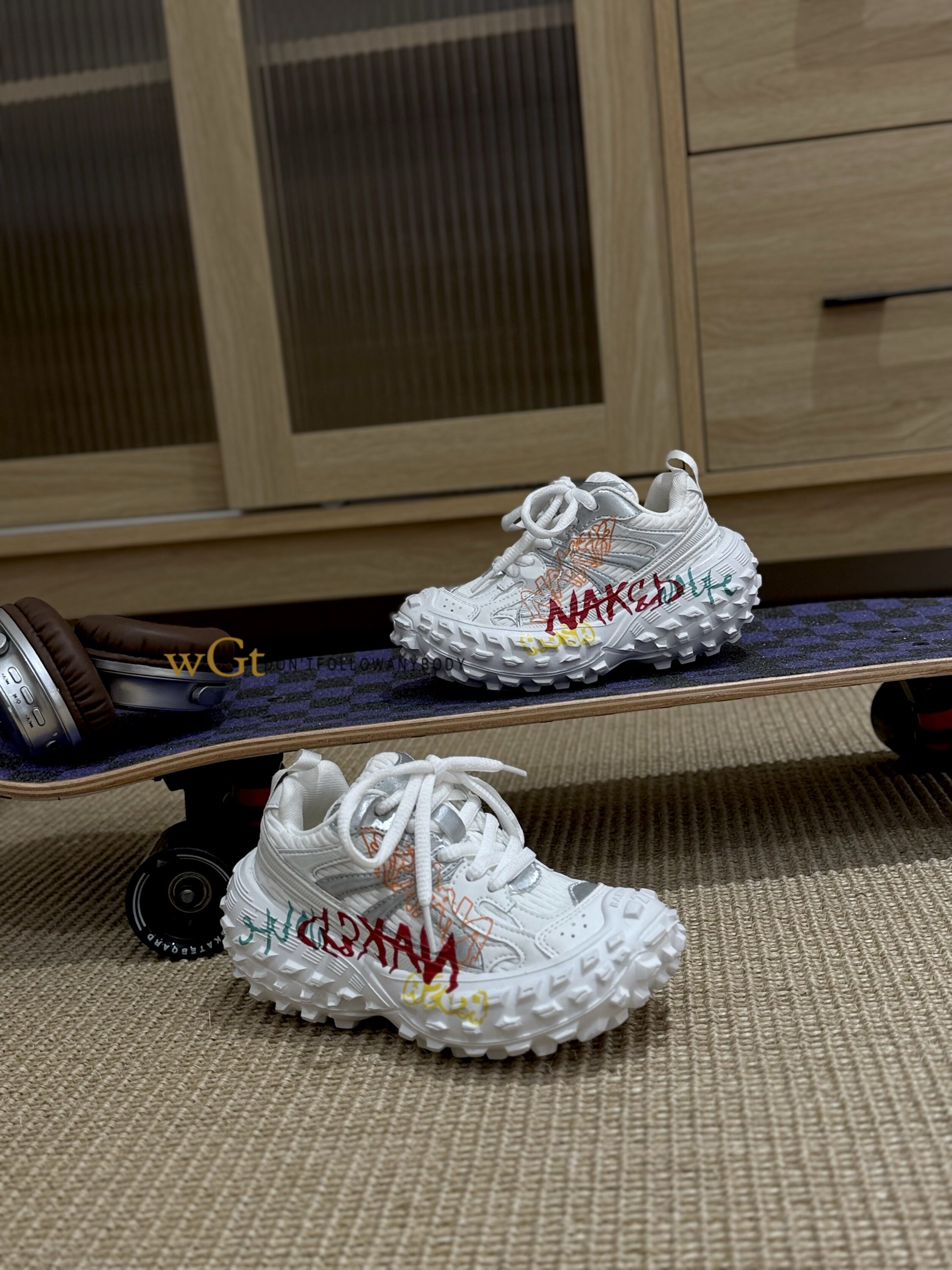 2026春款韩版童鞋潮牌WGT中大男女童魔术贴轻便运动榴莲底老爹鞋
