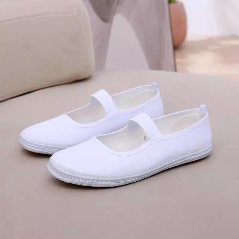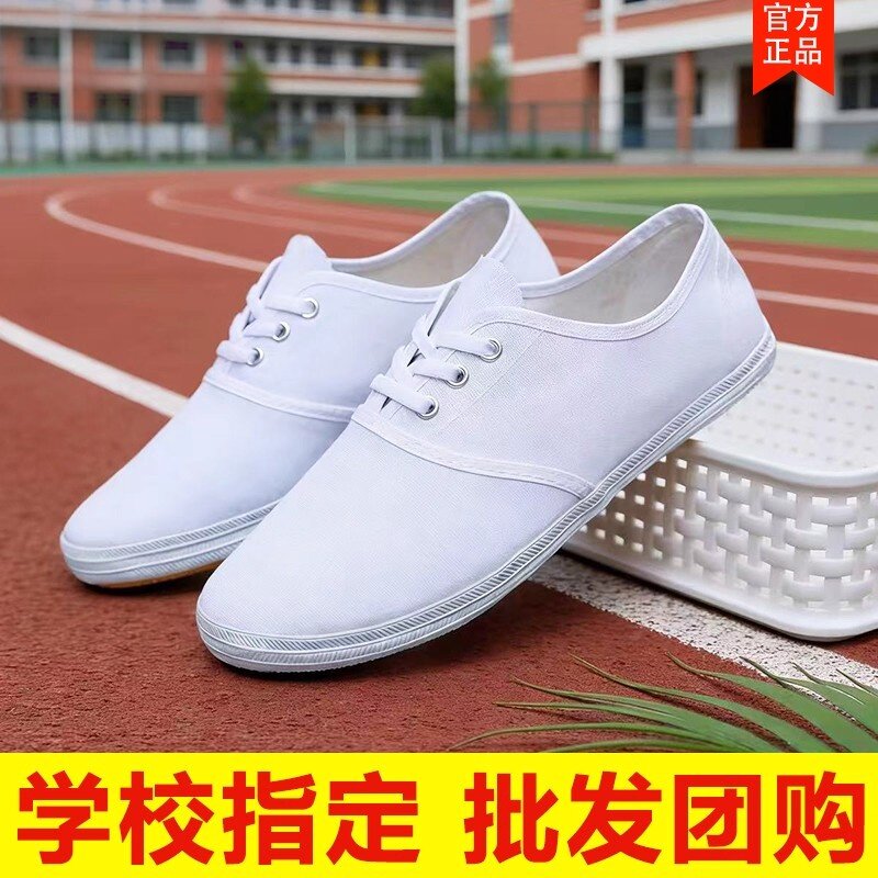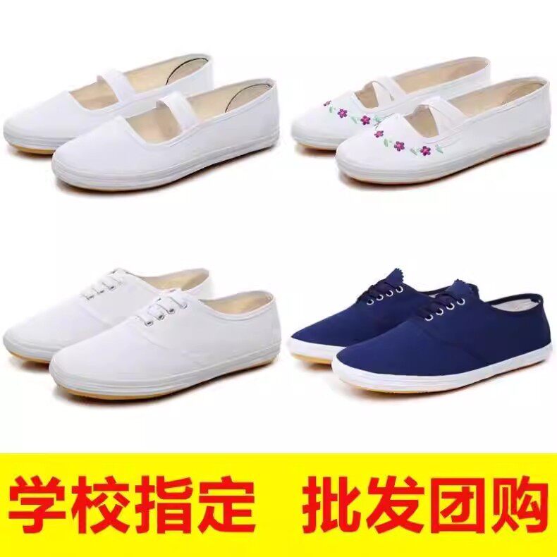帆布鞋女款室内学生小白鞋体操鞋白网鞋表演鞋白球鞋白工作鞋男鞋
