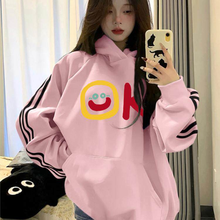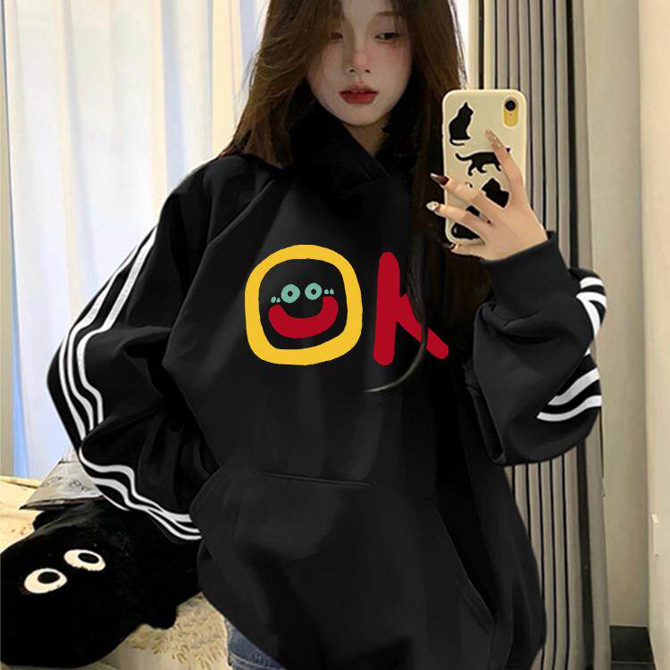 2026新款连帽卫衣秋冬藏青色独特宽松显瘦三条杠加绒加厚外套女款