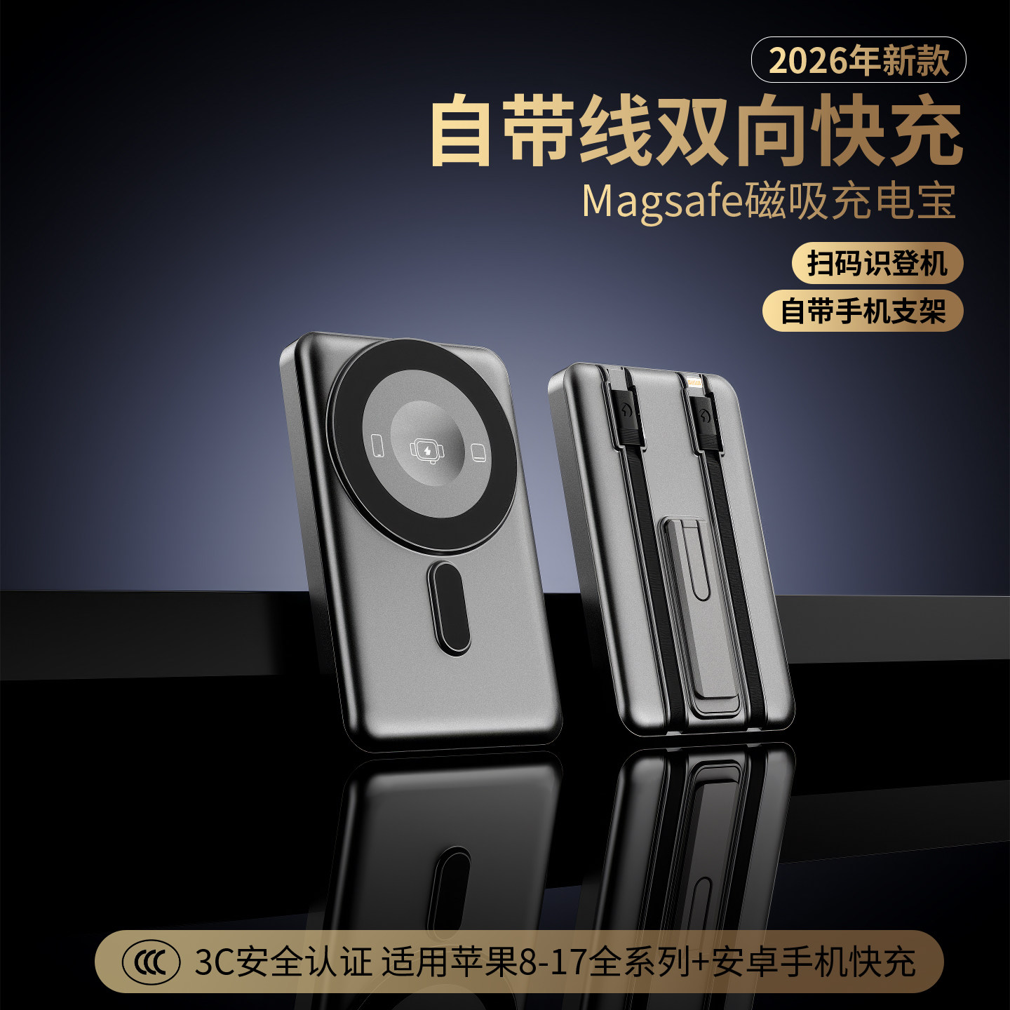 新国标3C认证可上飞机2026新款磁吸充电宝快充大容量自带线20000毫安无线超薄小巧便携充手表适用华为苹果17
