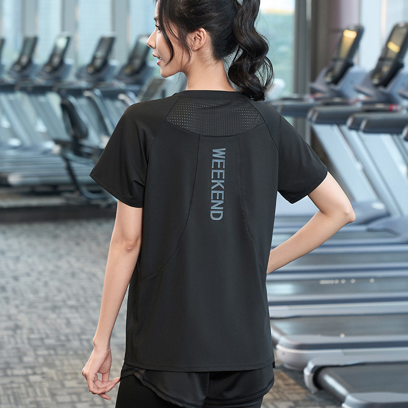 胖mm大码运动短袖女速干透气跑步专用上衣宽松显瘦瑜伽服套装夏季