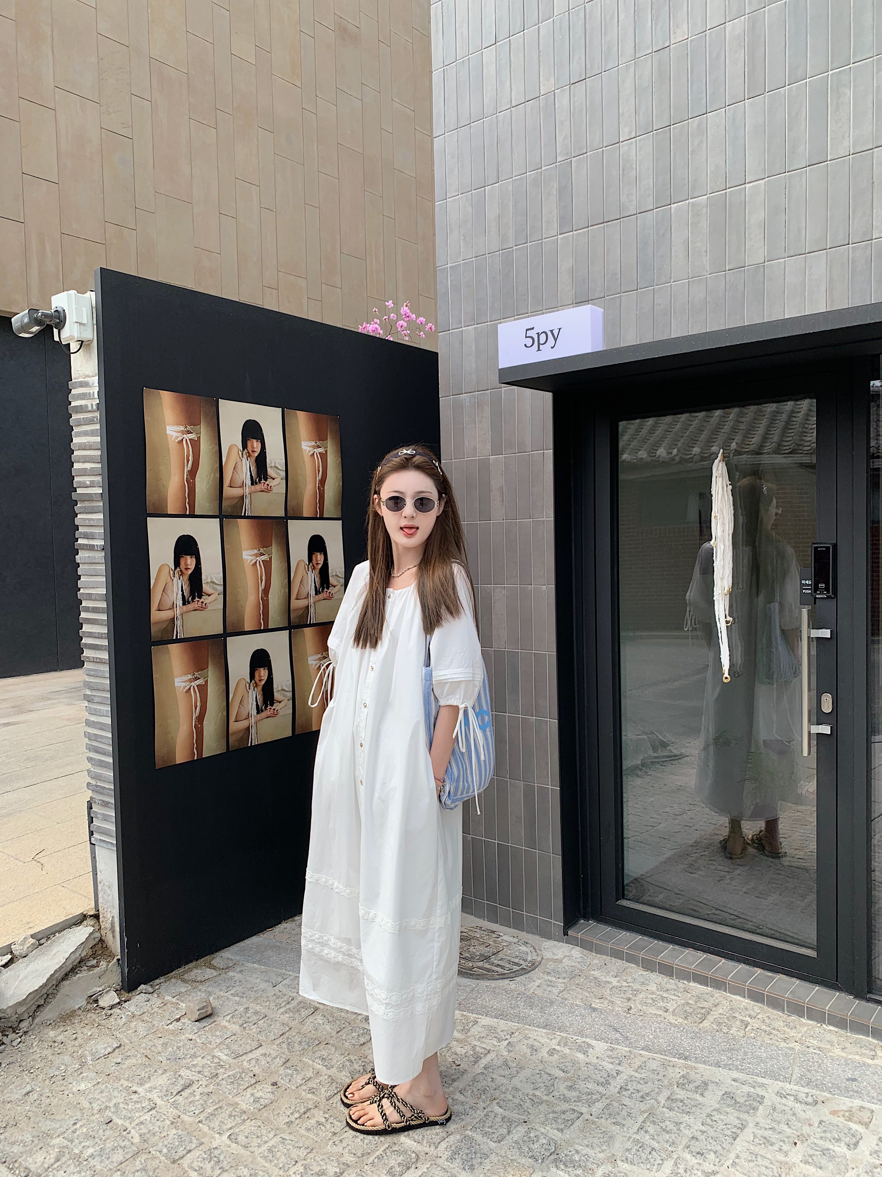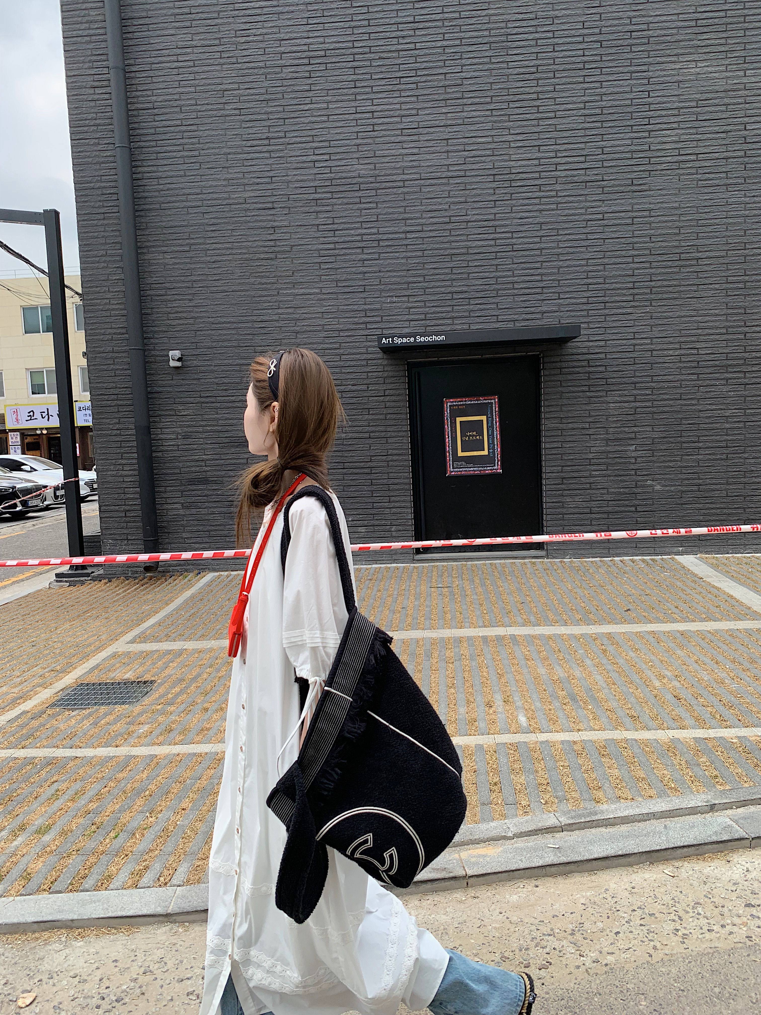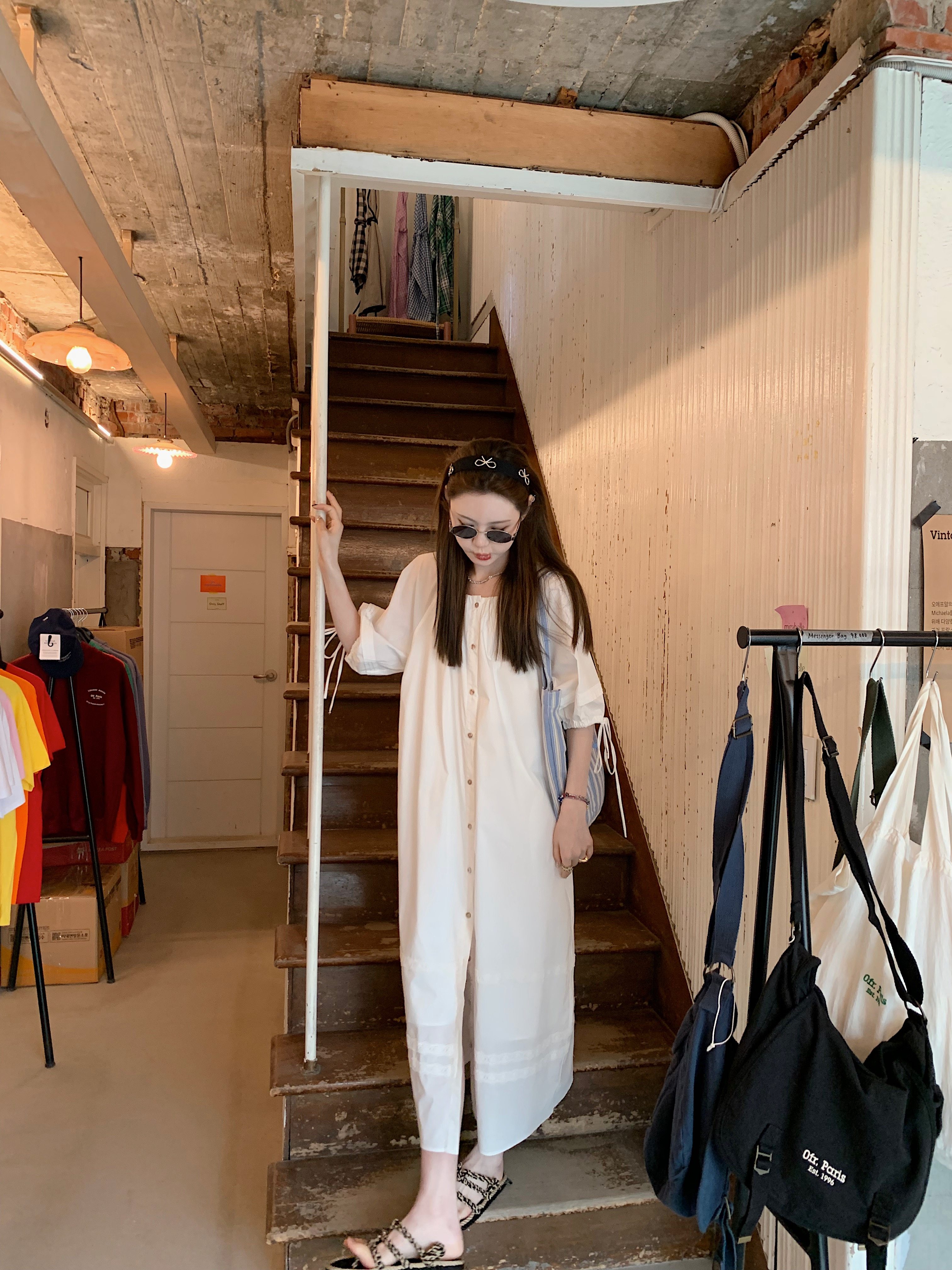 aaaaxbbb 曼塔水仙 仙气连衣裙白色棉质宽松显瘦系带手工压褶长裙