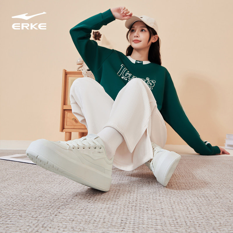 311线报网描述:鸿星尔克女鞋板鞋厚底增高白色休闲运动鞋子