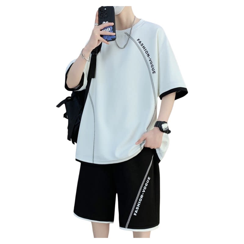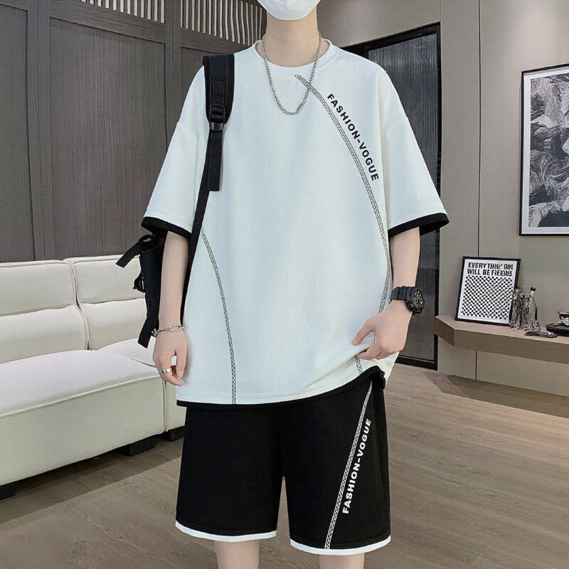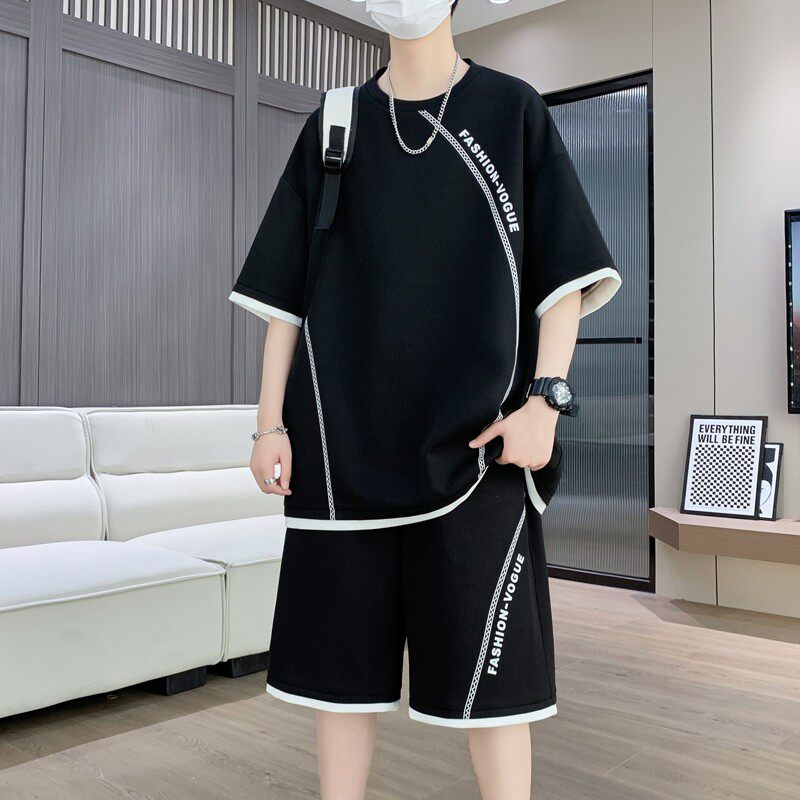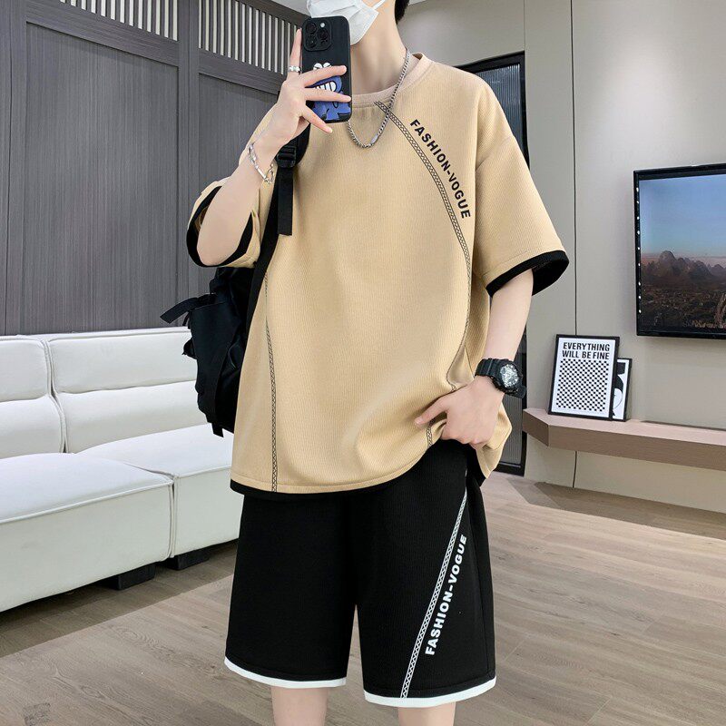 冰丝短袖t恤男孩青少年夏季新款初中学生帅气套装大童运动休闲潮
