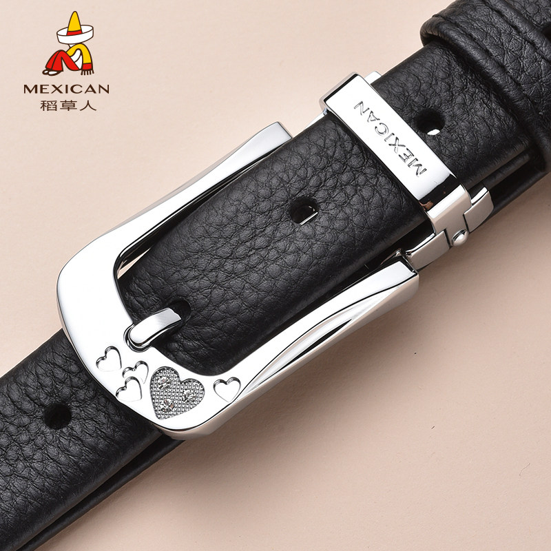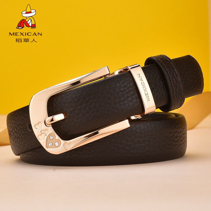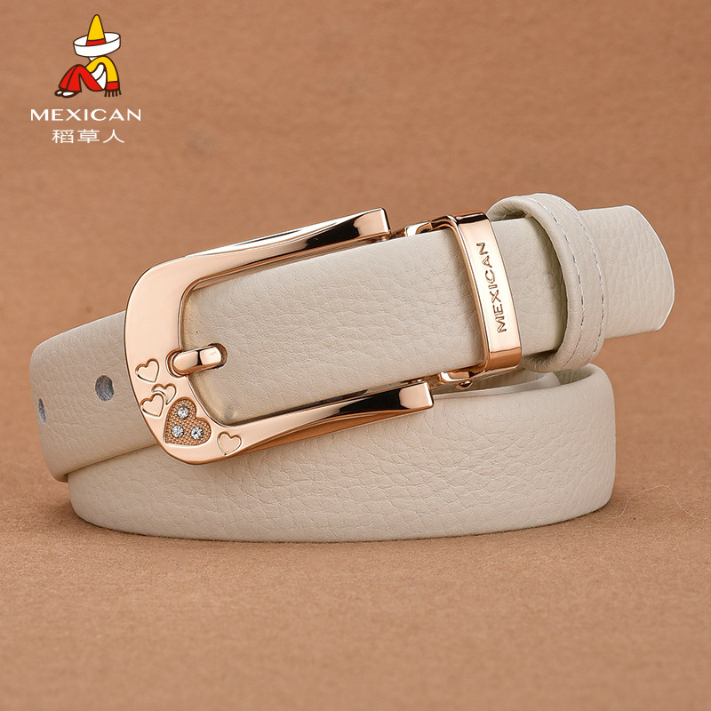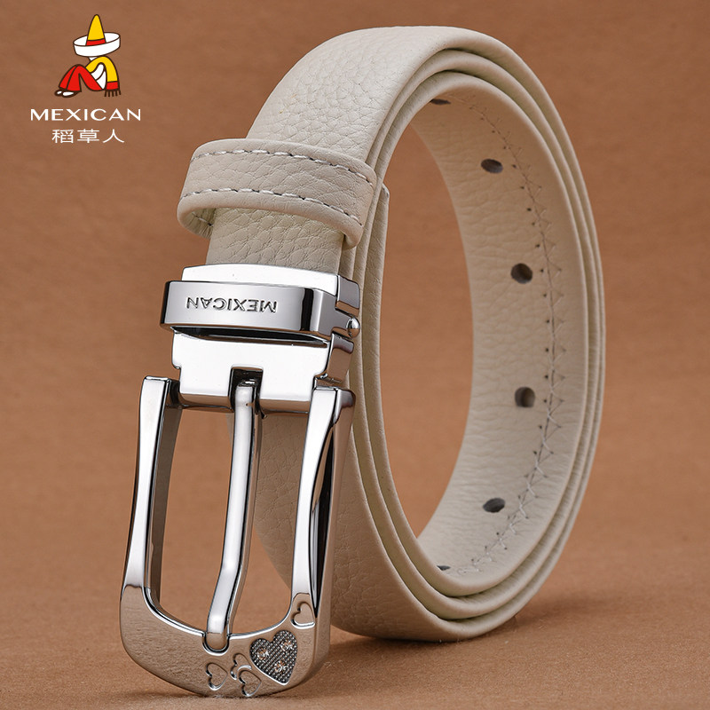 稻草人皮带女士真皮头层牛皮针扣腰带女简约ins风牛仔裤裤带加长