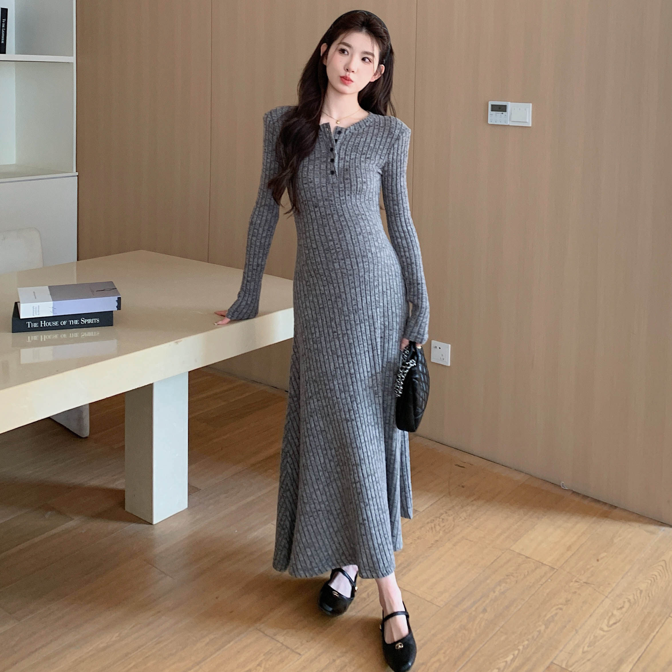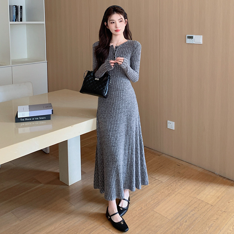 小个子韩系百搭长袖大码连衣裙女装秋季2025新款气质显瘦内搭长裙