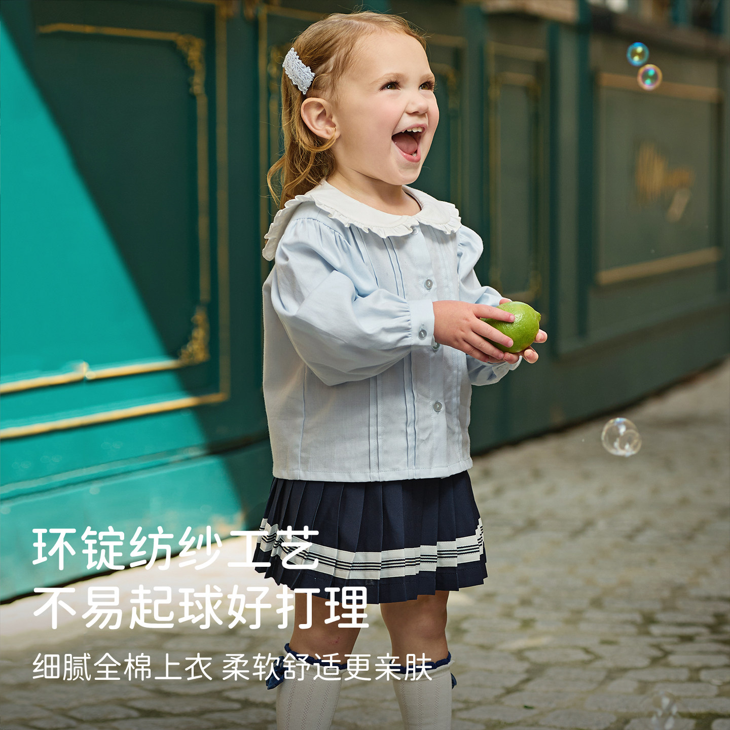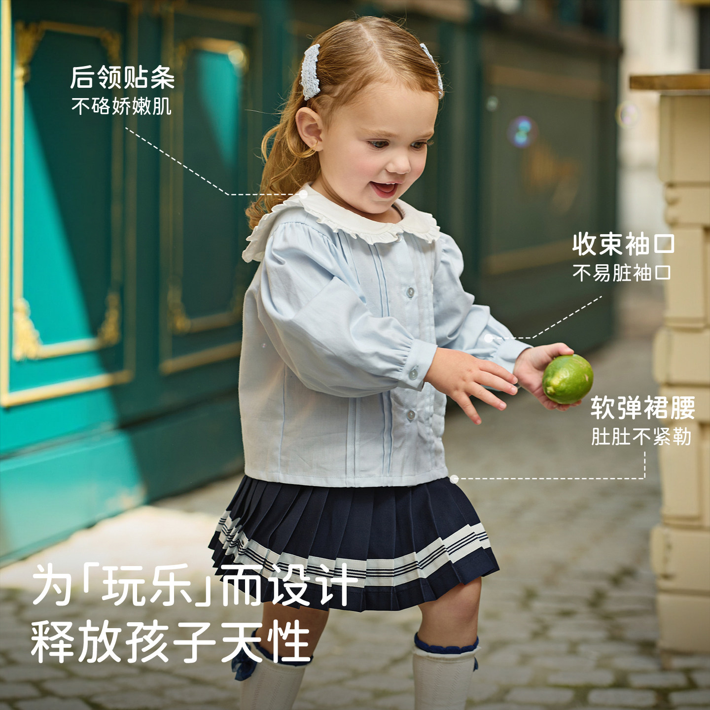 戴维贝拉儿童半裙套装2026春装新款女童学院风衬衫百褶裙洋气宝宝