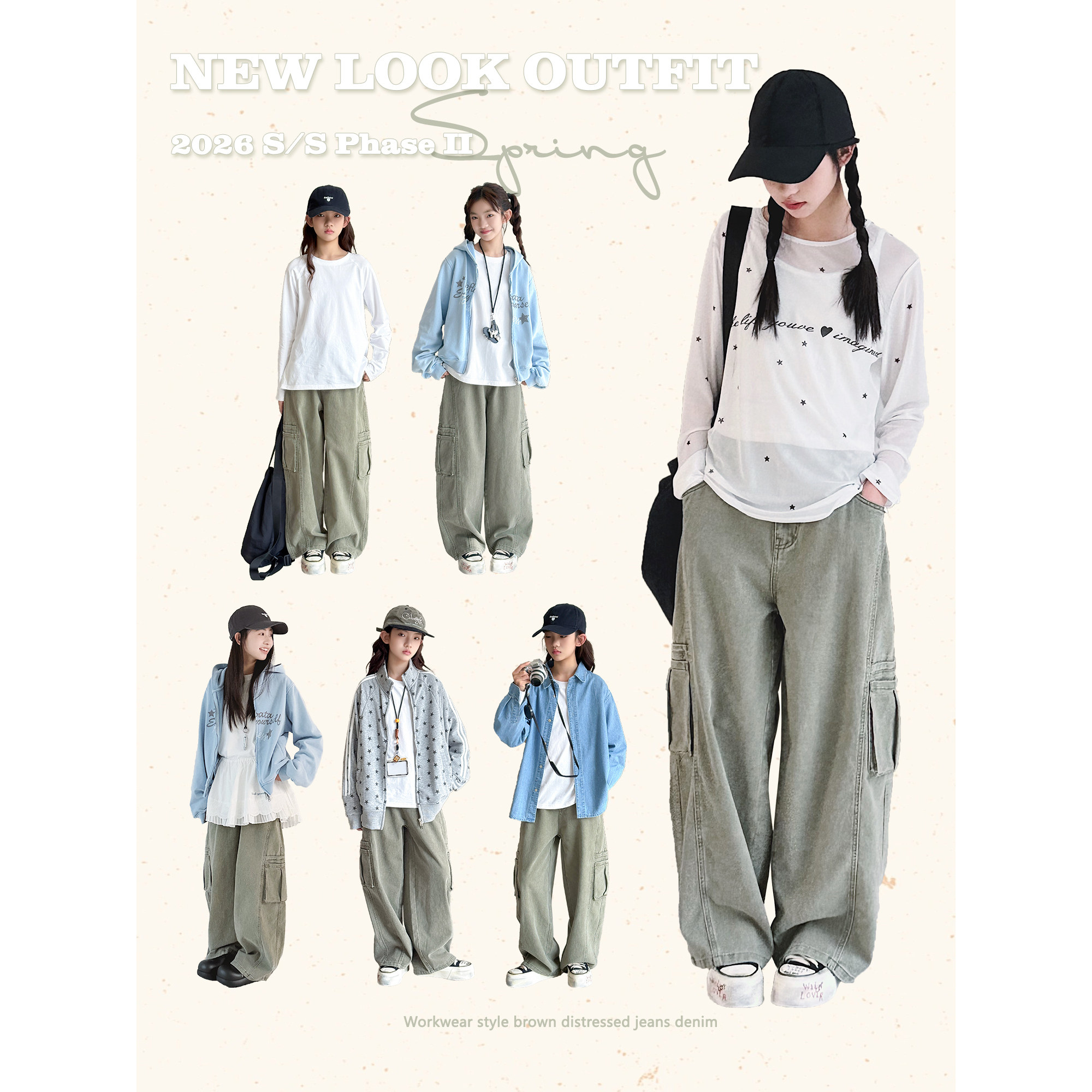 【旷野苔藓】初中生女牛仔裤2026春装新款青少年复古工装休闲裤子