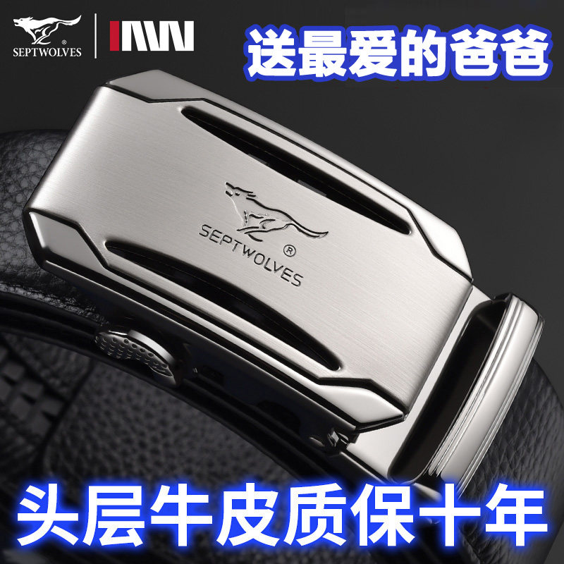 正品七匹狼男士头层牛皮腰带自动扣商务真皮裤带2026高档生日礼物
