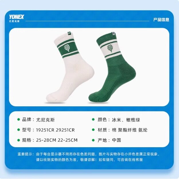 YONEX尤尼克斯羽毛球男女袜专业运动袜19251CR加厚速干抗菌长筒袜