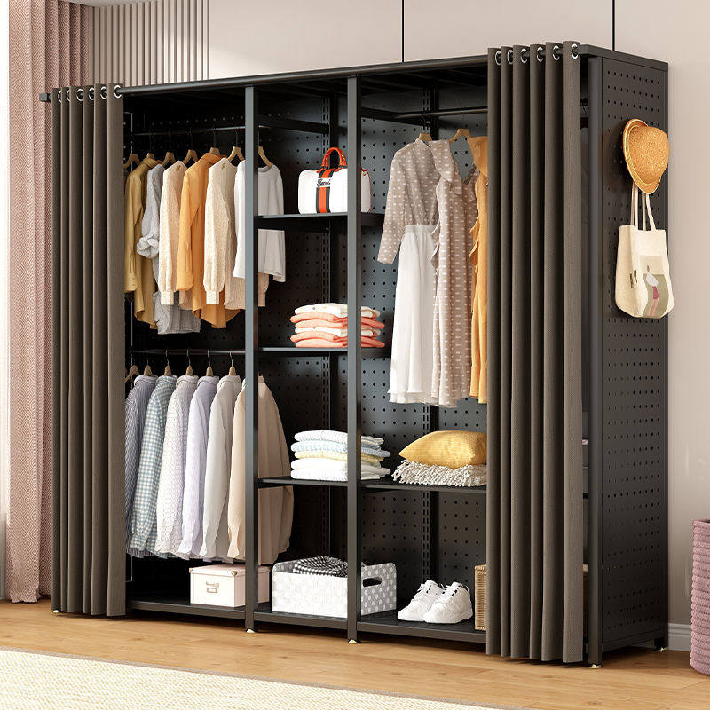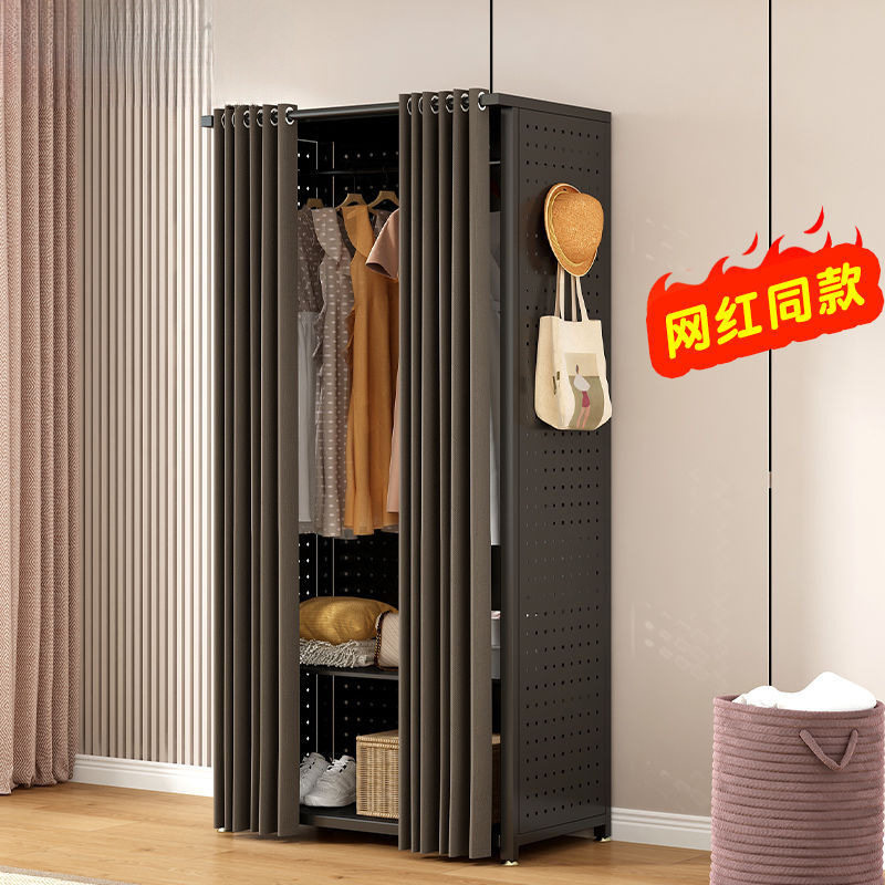 2026洞洞板简易衣柜家用卧室金属货架铁艺开放式衣柜带防尘帘衣橱