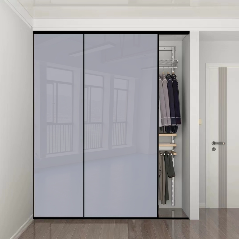 砌墙衣柜门推拉门定制北欧简约pet欧松板肤感高光实木移门滑动门