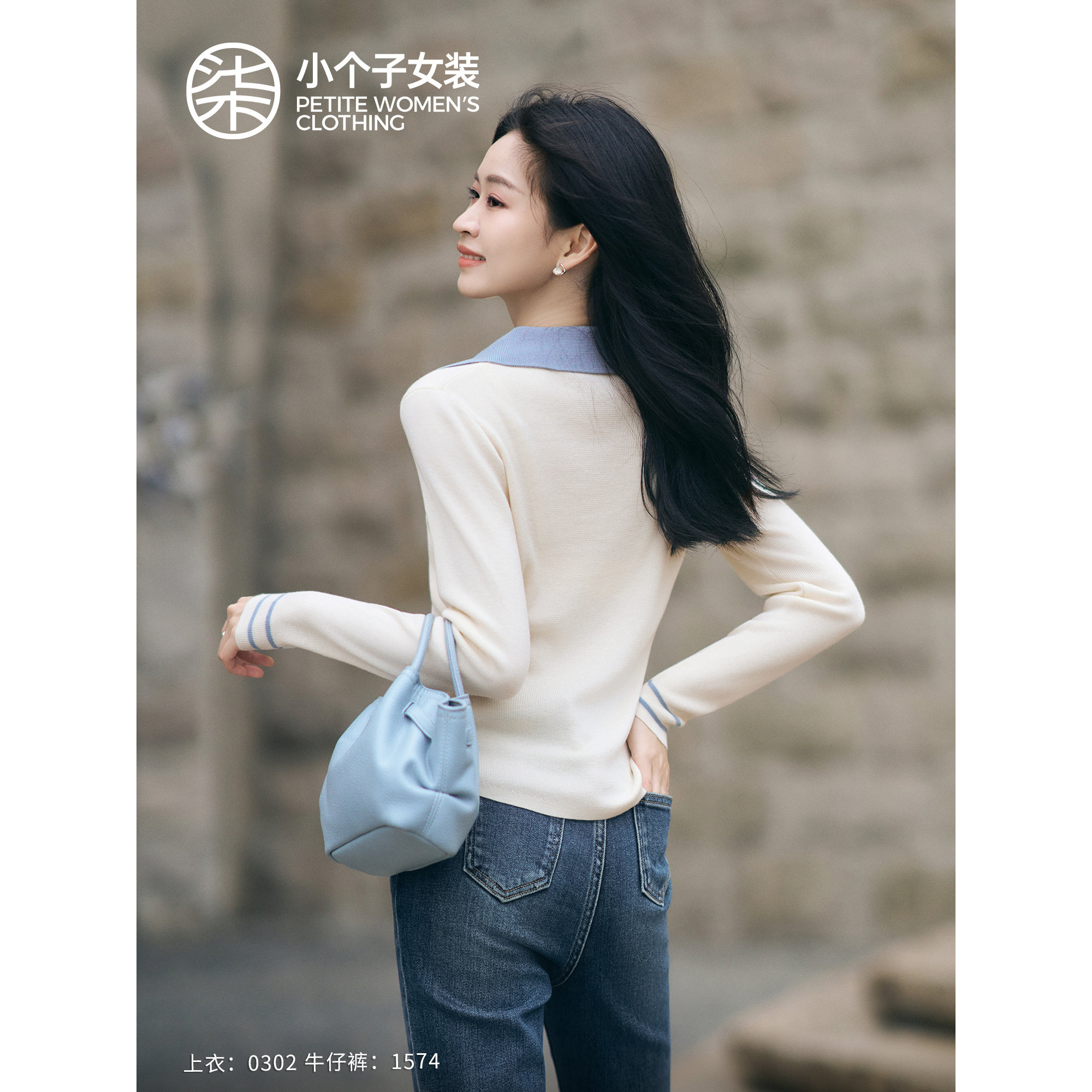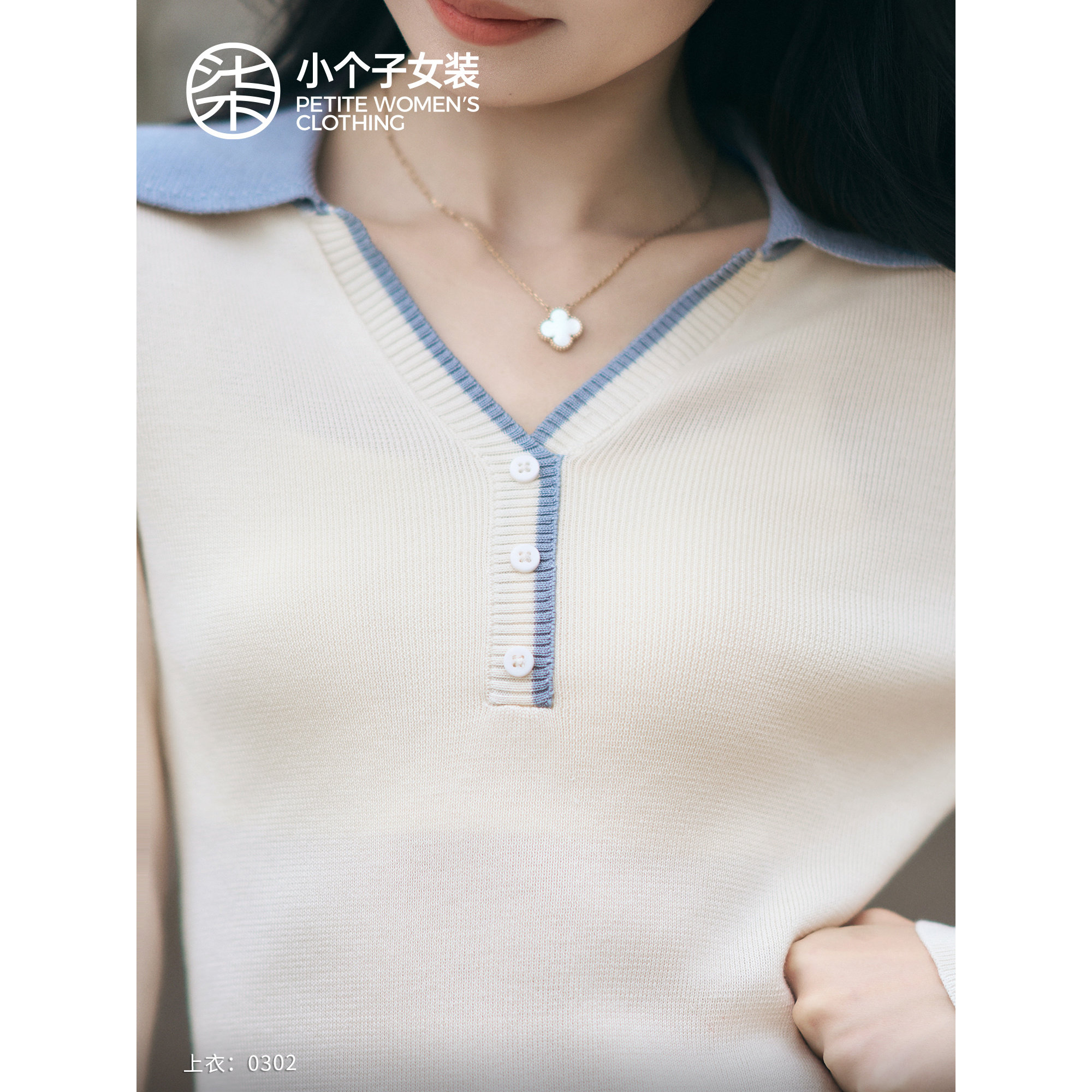 柒量一裁莱赛尔撞色翻领毛衣小个子2026早春新款毛织上衣0302