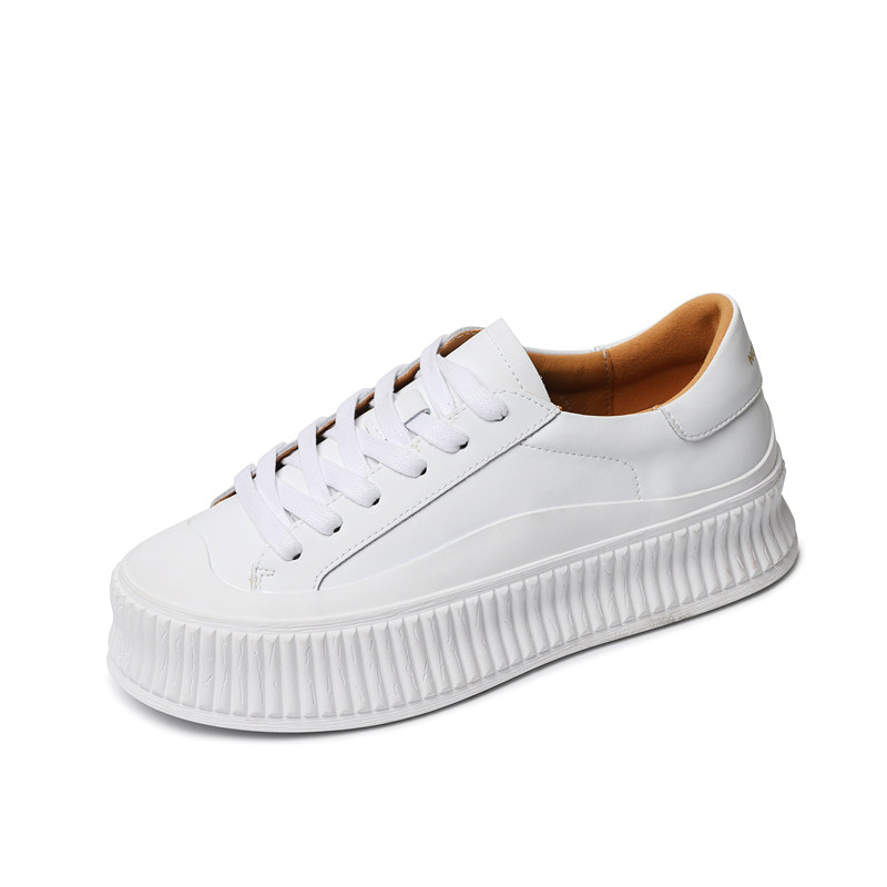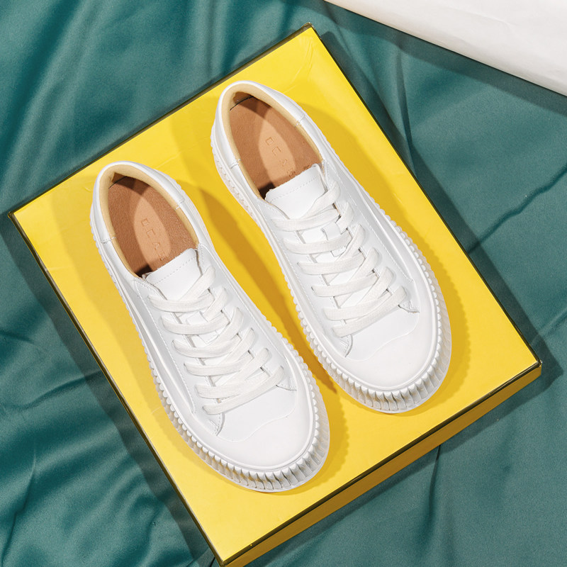 全牛皮~厚底内增高小白鞋女2026新款休闲板鞋真皮松糕韩国饼干鞋