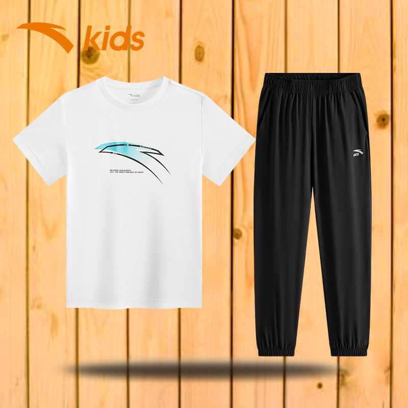 安踏童装男大童帅气时髦套装2026夏季新款儿童短袖套装青少年夏装