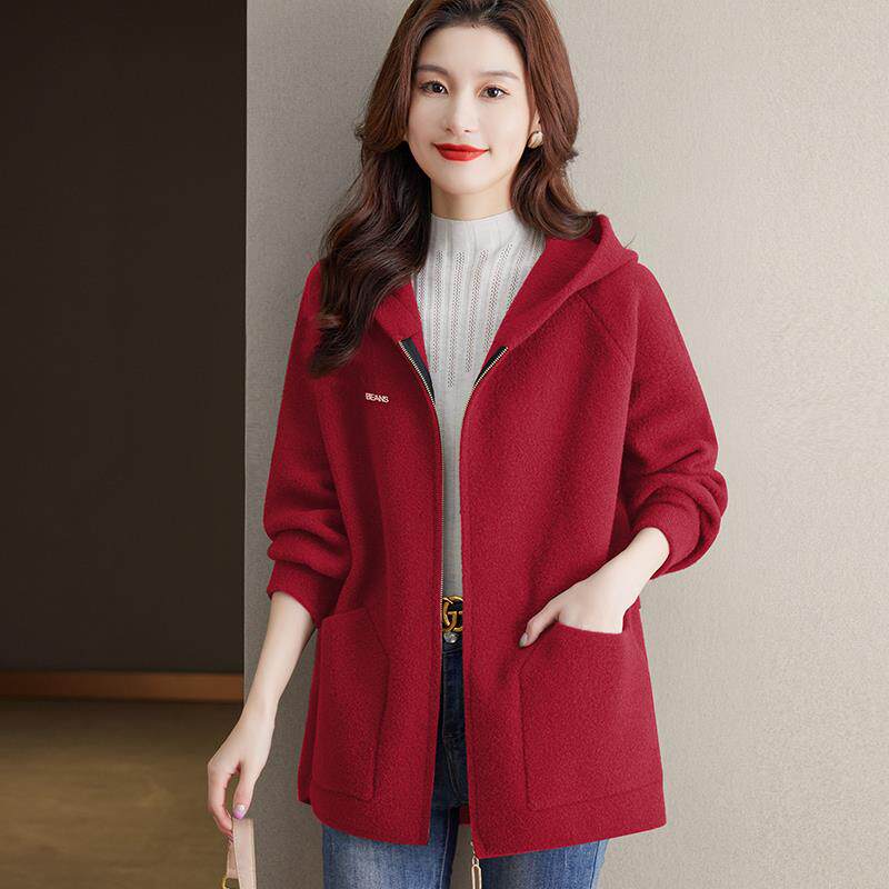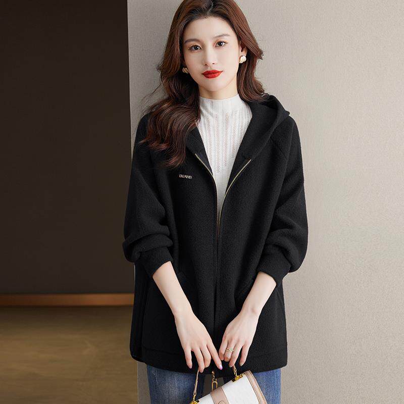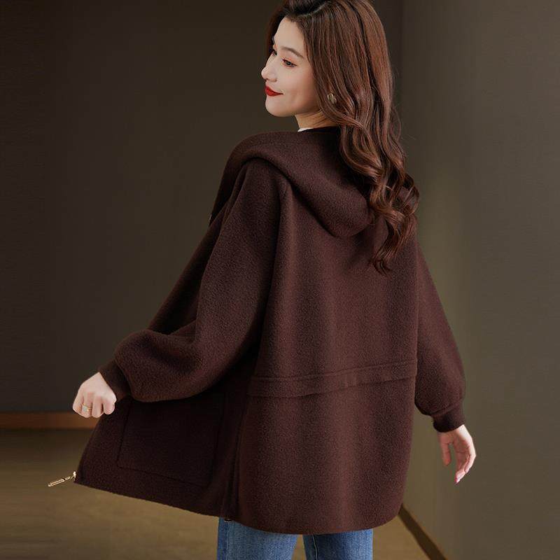 加肥加大码女装秋冬毛呢外套女连帽宽松休闲中年妈妈双面羊绒大衣