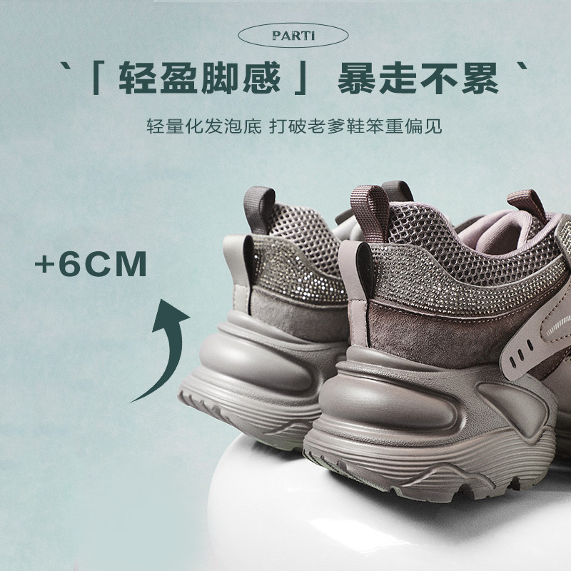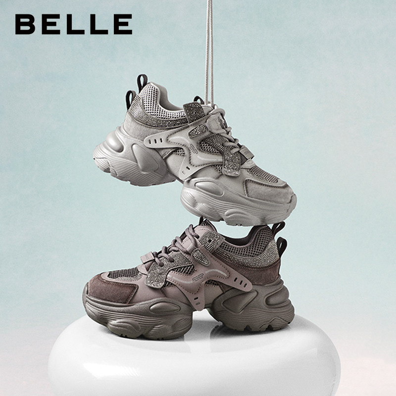 百丽女鞋子机能风灰色老爹鞋春新款厚底增高休闲运动鞋F1H1DAM6预