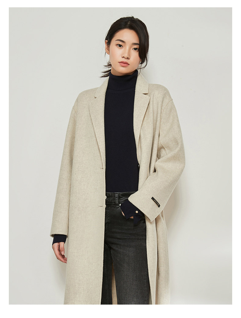 万丽(服饰)秋冬双面大衣女中长款宽松100%羊毛毛呢外套