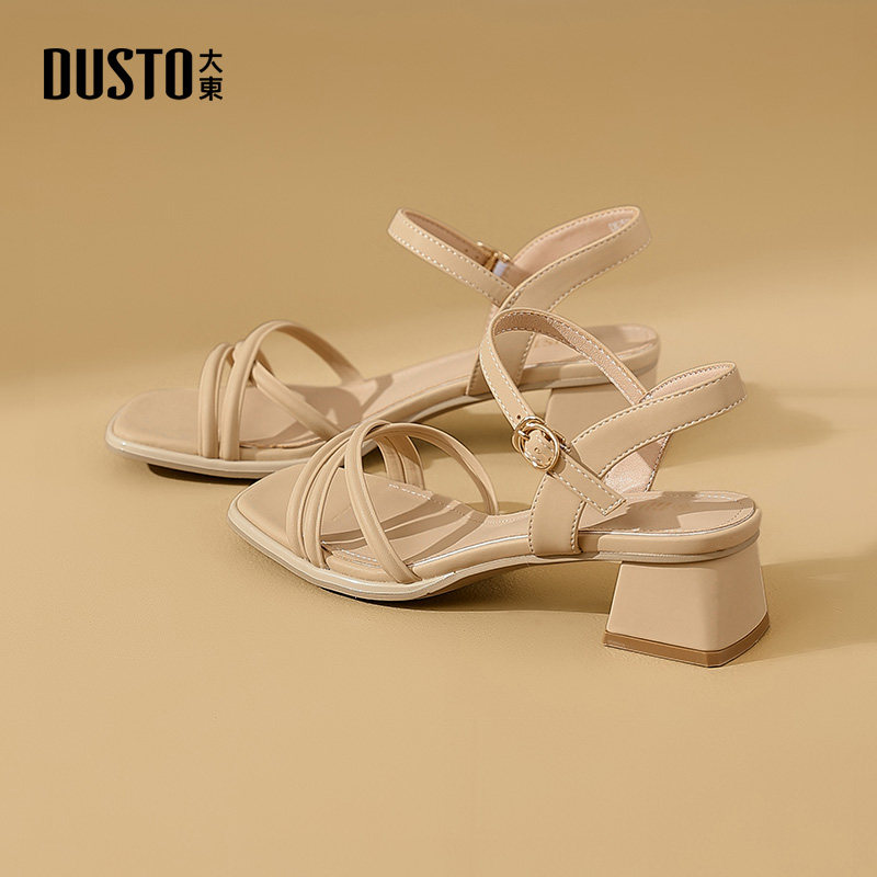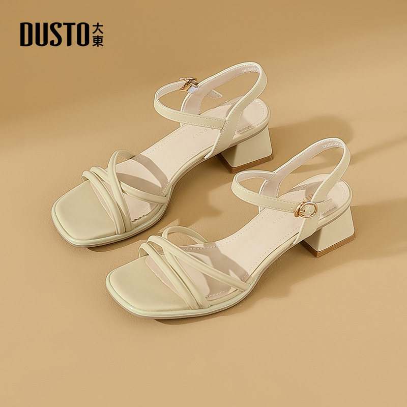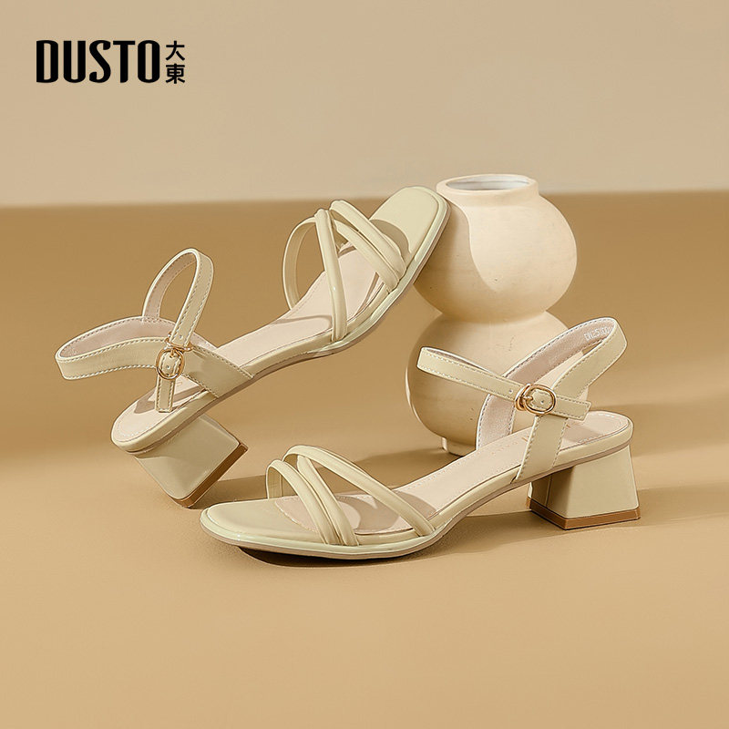 大东凉鞋女款2026新款夏季外穿配裙子女鞋粗跟一字带气质高跟鞋子