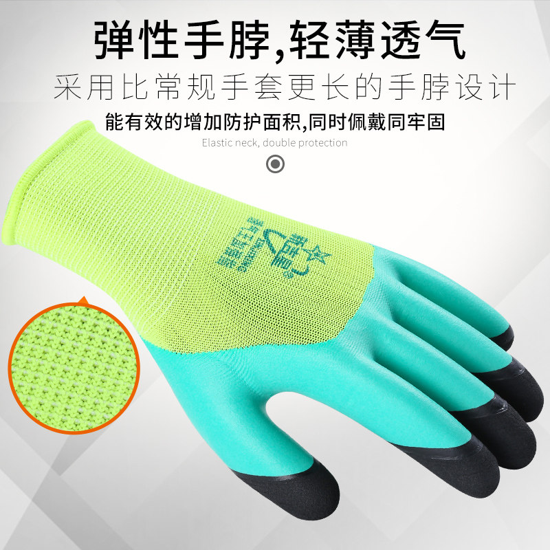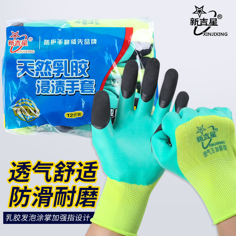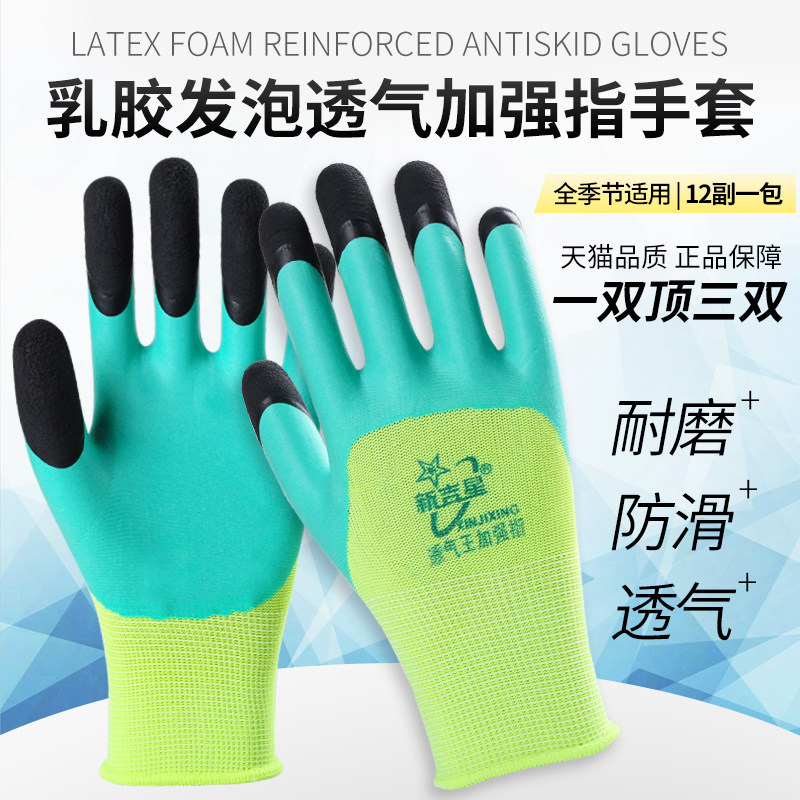 手套劳保耐磨工作胶皮浸胶加厚工地干活透气王加强指乳胶发泡手套