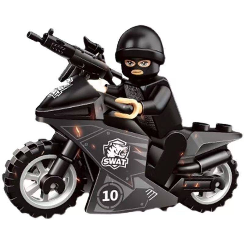 反恐特战队兼容乐高小颗粒积木玩具摩托车警车男孩儿童拼装越野