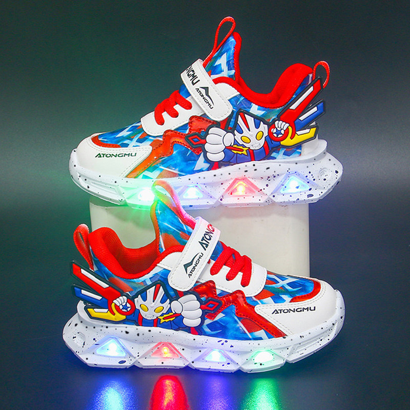 奥特曼儿童鞋子男童发光带灯2026新款秋冬网面透气运动鞋中大童鞋