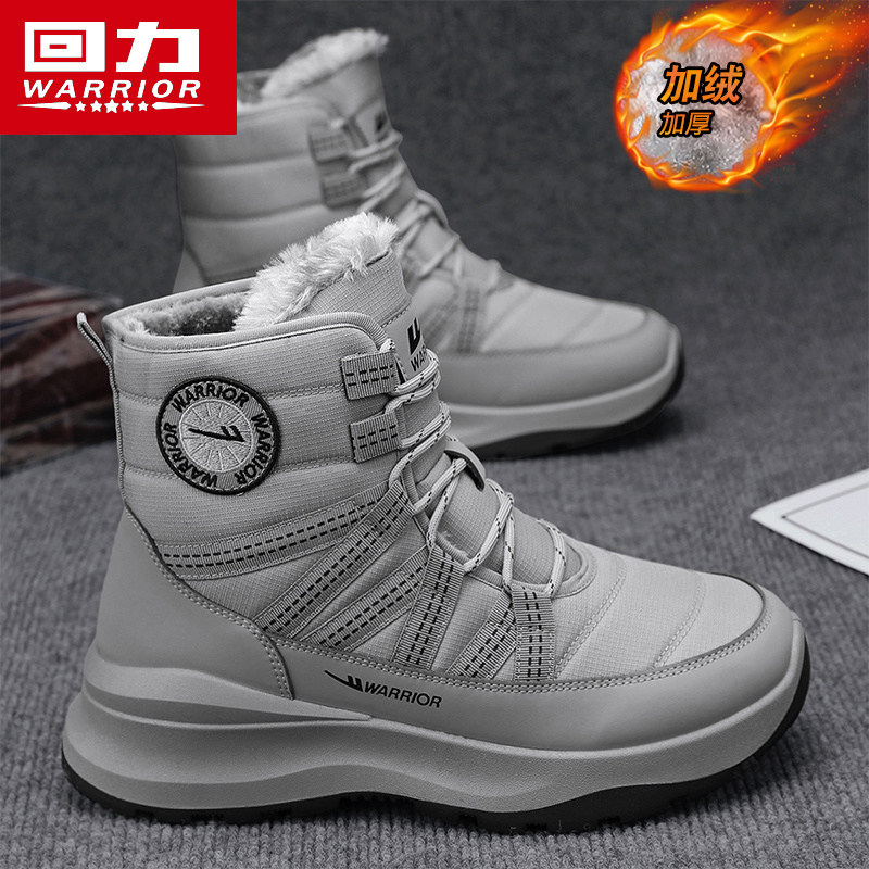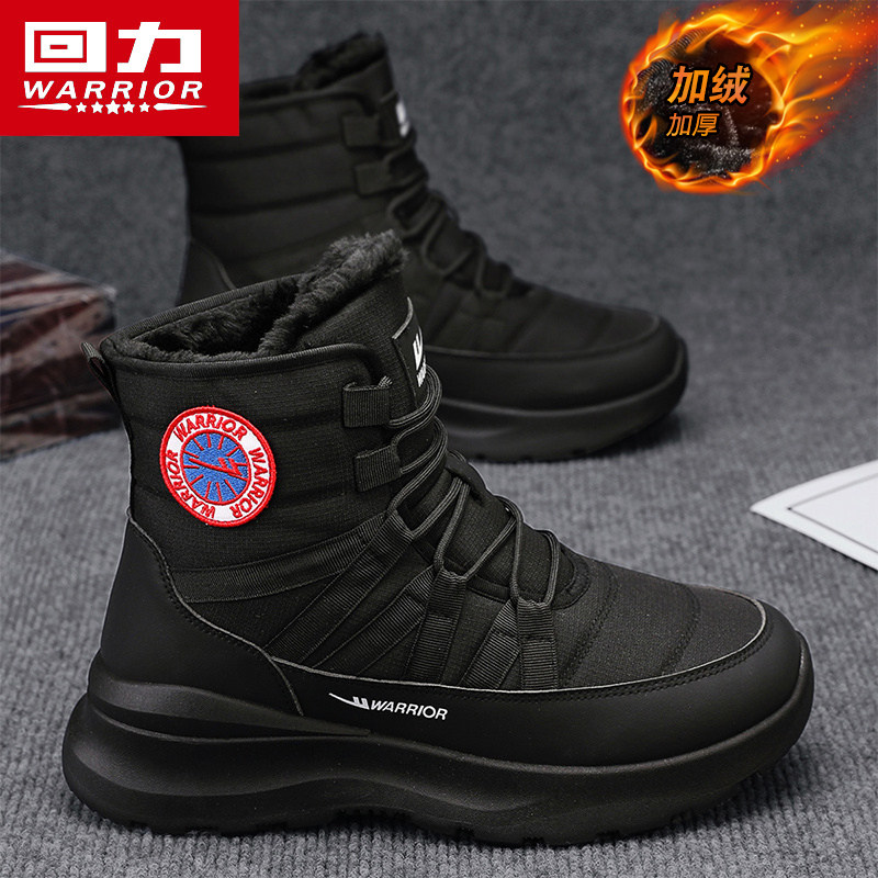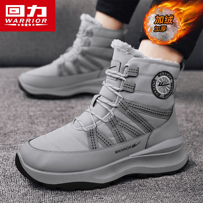 回力雪地靴男款冬季保暖防滑厚底户外棉靴加绒加厚短筒防寒棉鞋子
