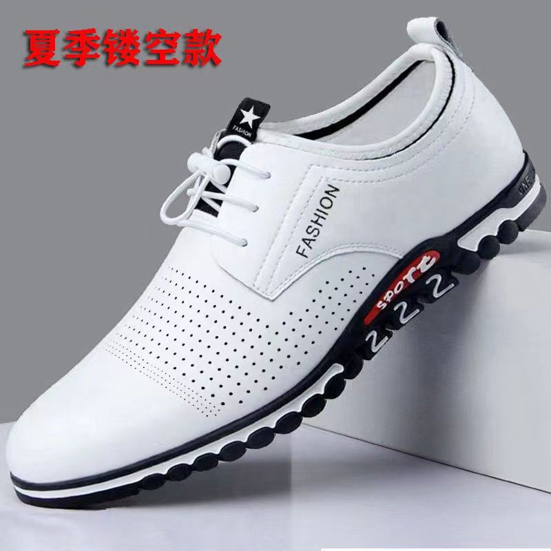 2026新款真皮牛皮男士皮鞋商务休闲透气一脚蹬男鞋内增高小白鞋男